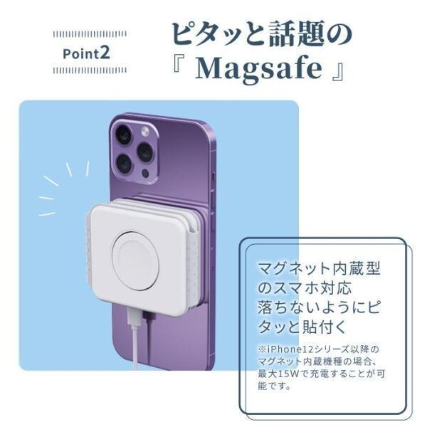 マグネット吸着 3台同時 モバイルバッテリー ワイヤレスイヤホン 充電器