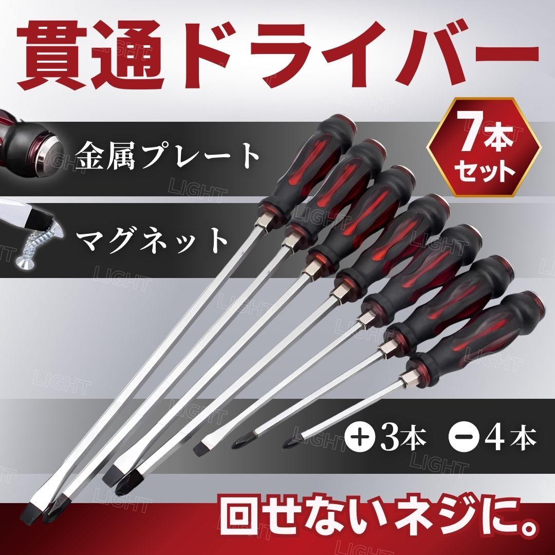 貫通ドライバー ショックドライバー 7本セット プラス マイナス ネジ外し 磁石付き 衝撃対応 DIY 工具 ハンマー タガネ ノミ スクリュー