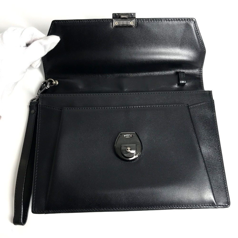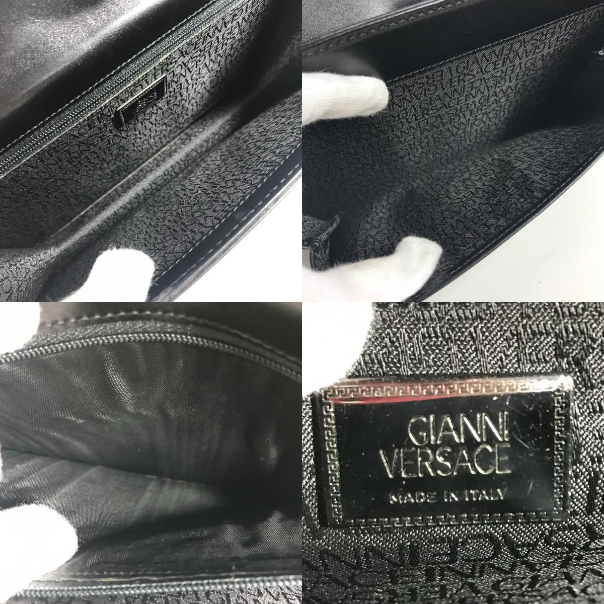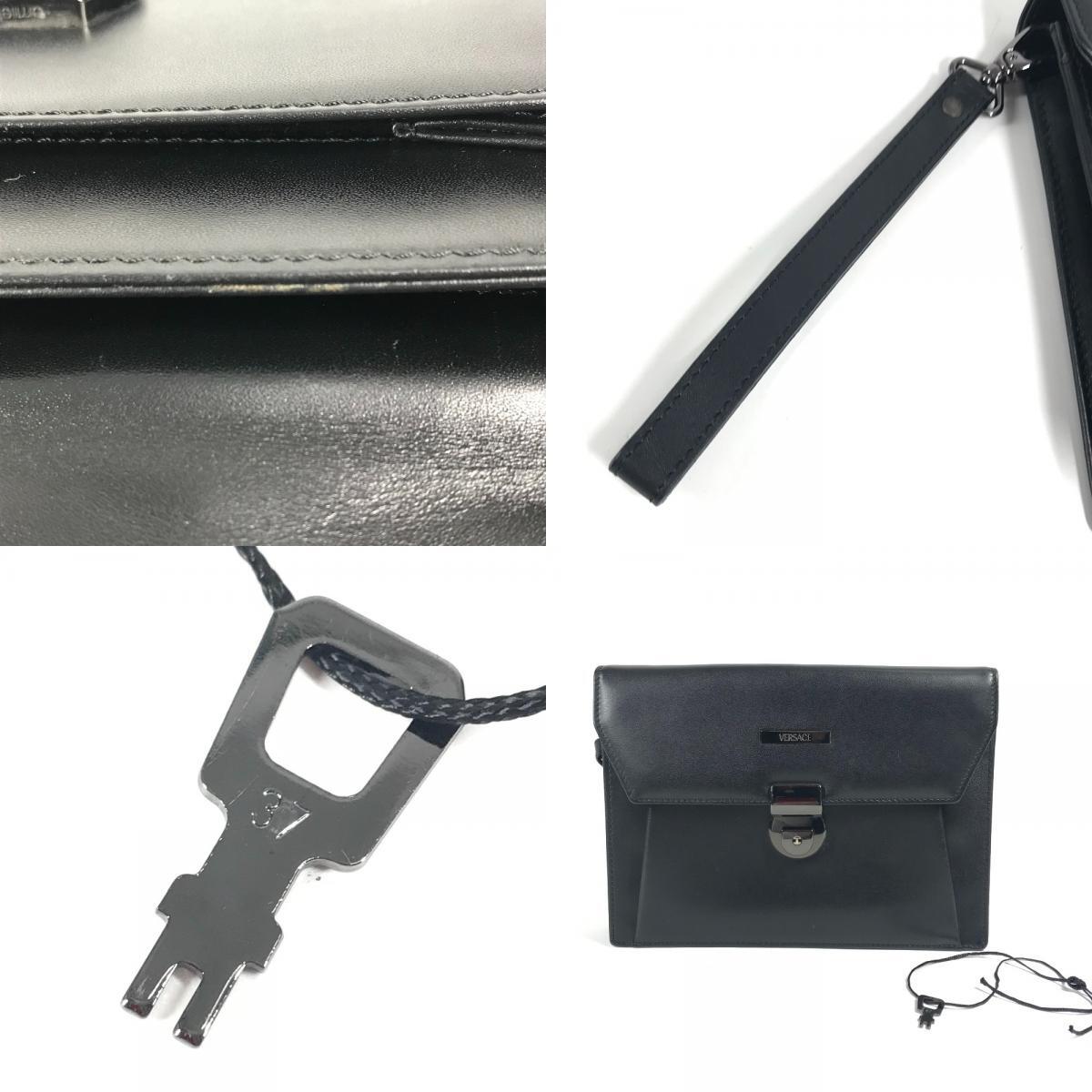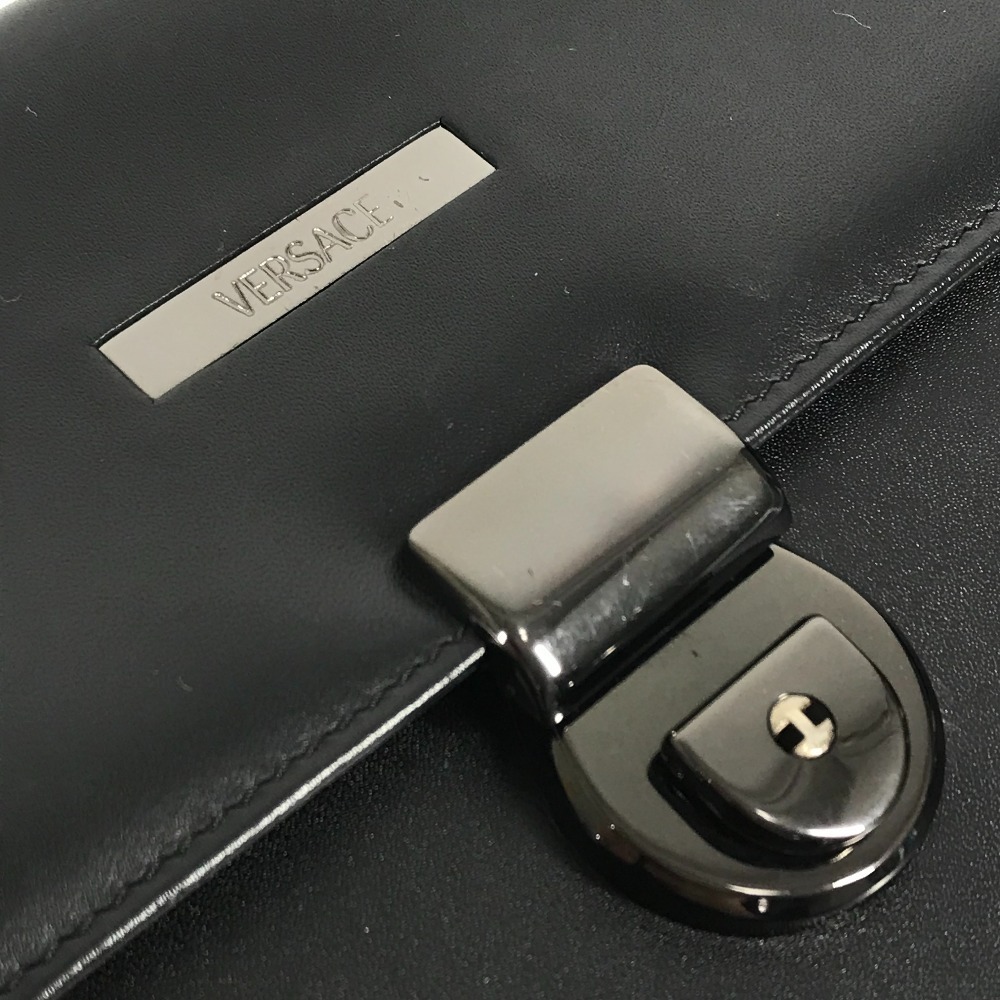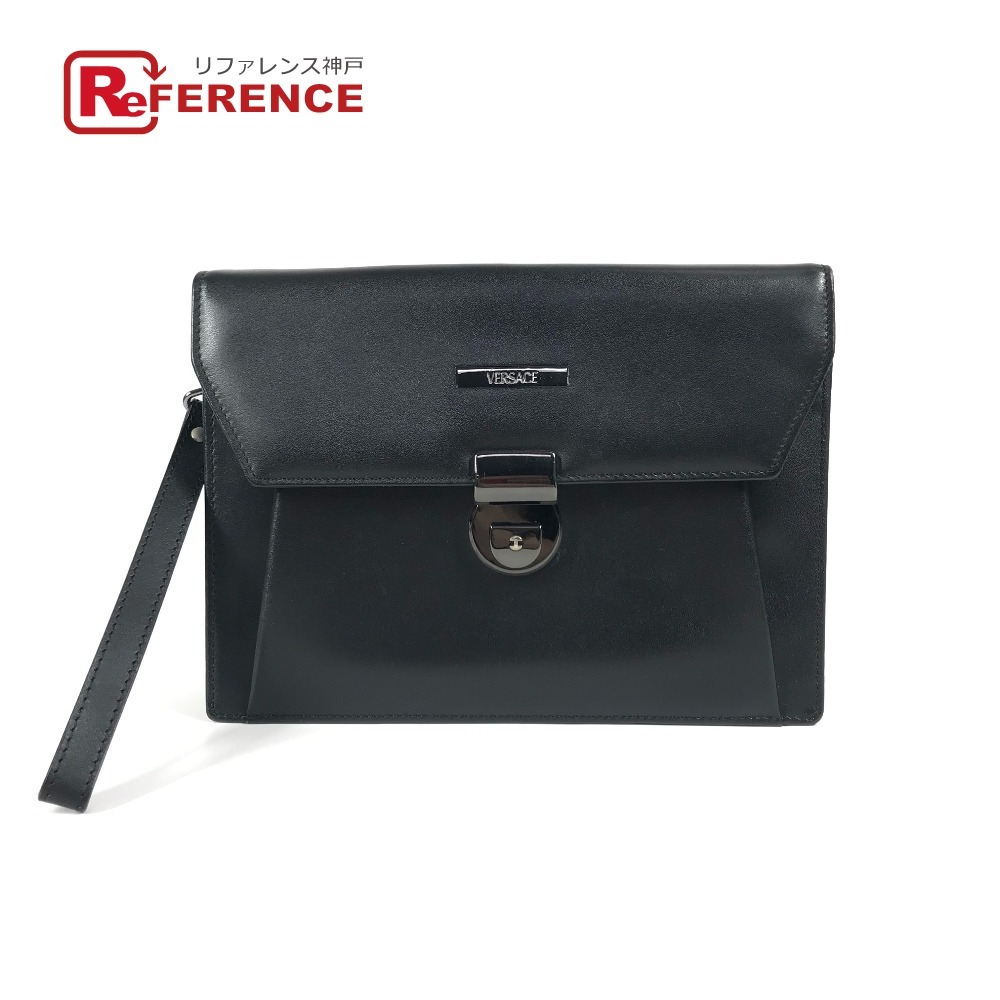 VERSACE ヴェルサーチ ロゴ カバン ポーチ フラップ クラッチバッグ ストラップ付き セカンドバッグ ブラック ユニセックス【中古】