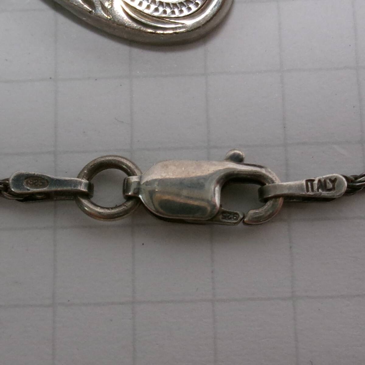 撮影の腕が悪いので画像は実物の方が良い場合が有ります。 重量:約8.29g サイズ:41cm 5mm方眼紙、メジャーを参照してください サイズ直しは専門店でお願いします。 材質:SV925 刻印:925(トップ) 925 ITALY(チェーン) 他見落としがある場合があります 状態:中古品 ご不明な点等がございましたらご気軽にご質問下さい (10時~17時30分)。即決はございません。 落札後24時間以内に連絡、72時間以内にお支払いが出来る方のみ入札をお願い致します。 取り置き 同梱可能です。(清算は済ませてください) 取り置き 別の日に決済の場合送料は現金でお返しします。 |