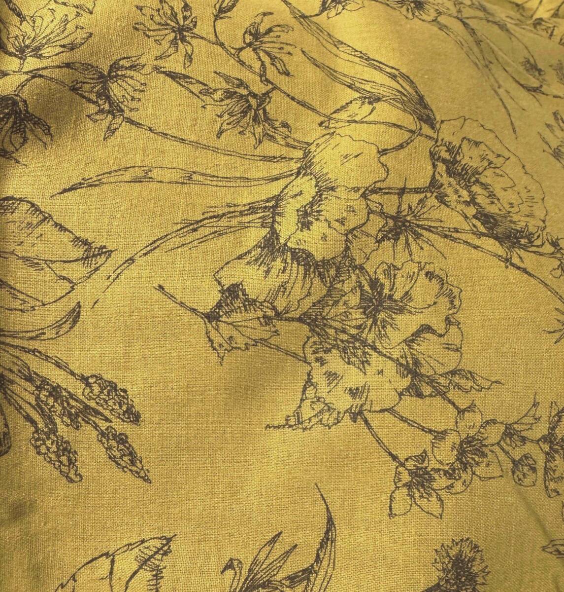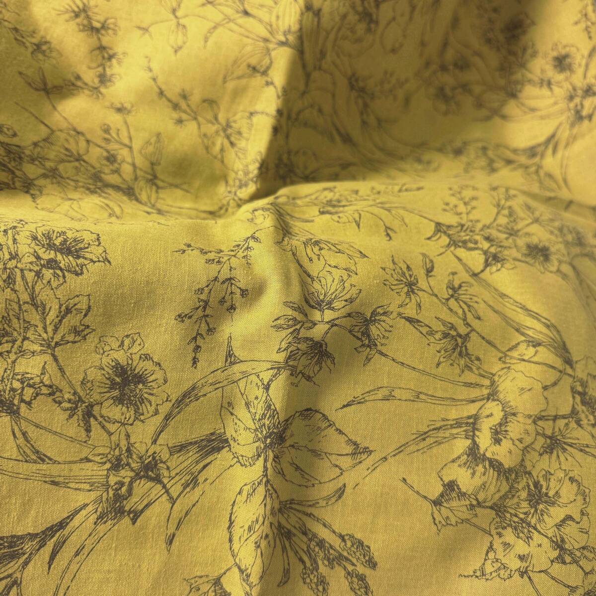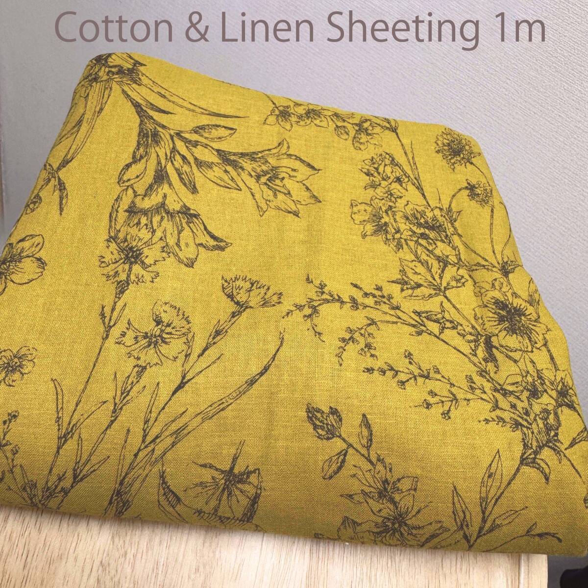 コットンリネン綿麻シーチング生地1mトワルドジュイ風ボタニカル花柄★植物柄★