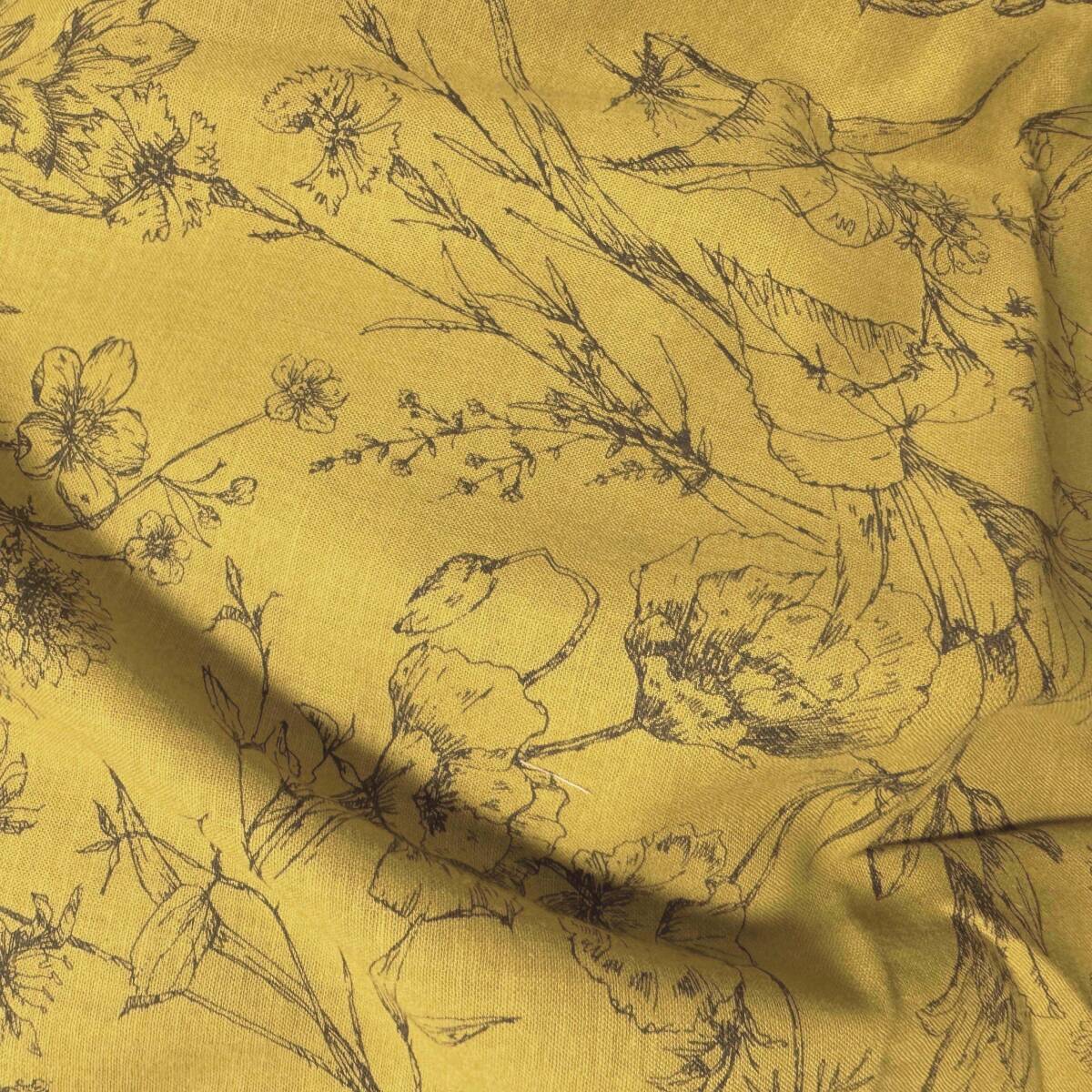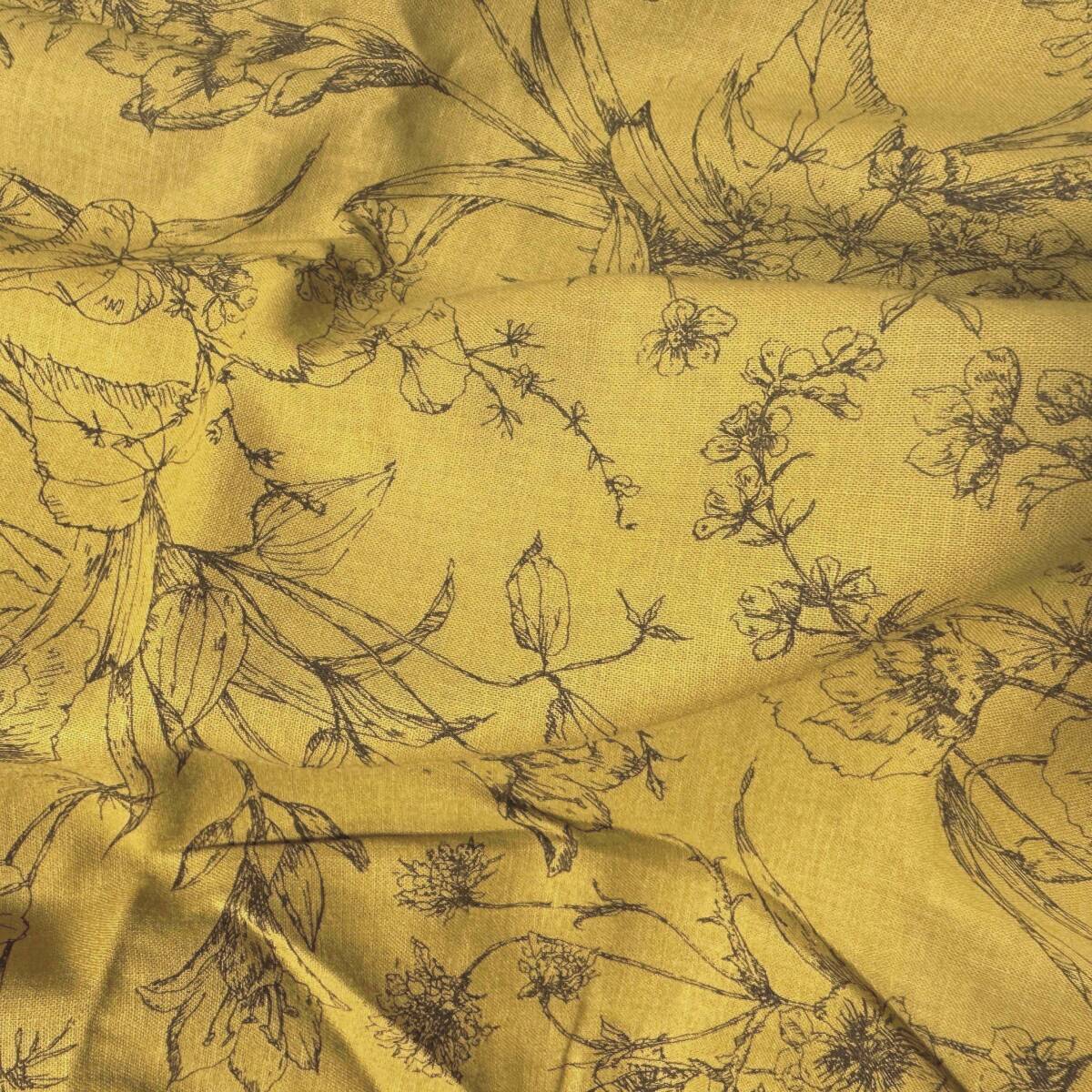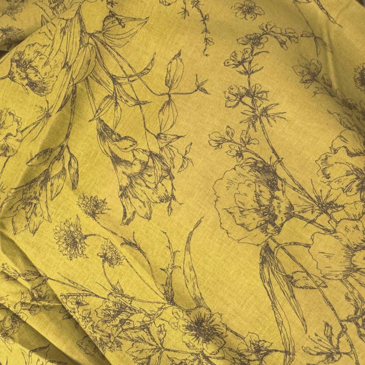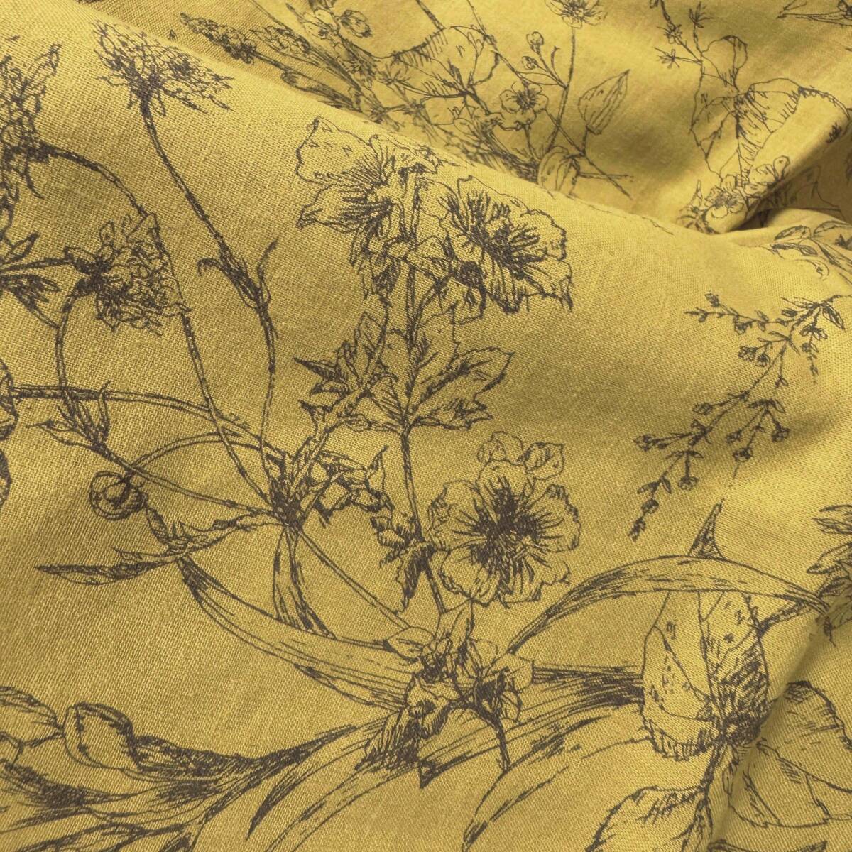 コットンリネン綿麻シーチング生地1mトワルドジュイ風ボタニカル花柄★植物柄★