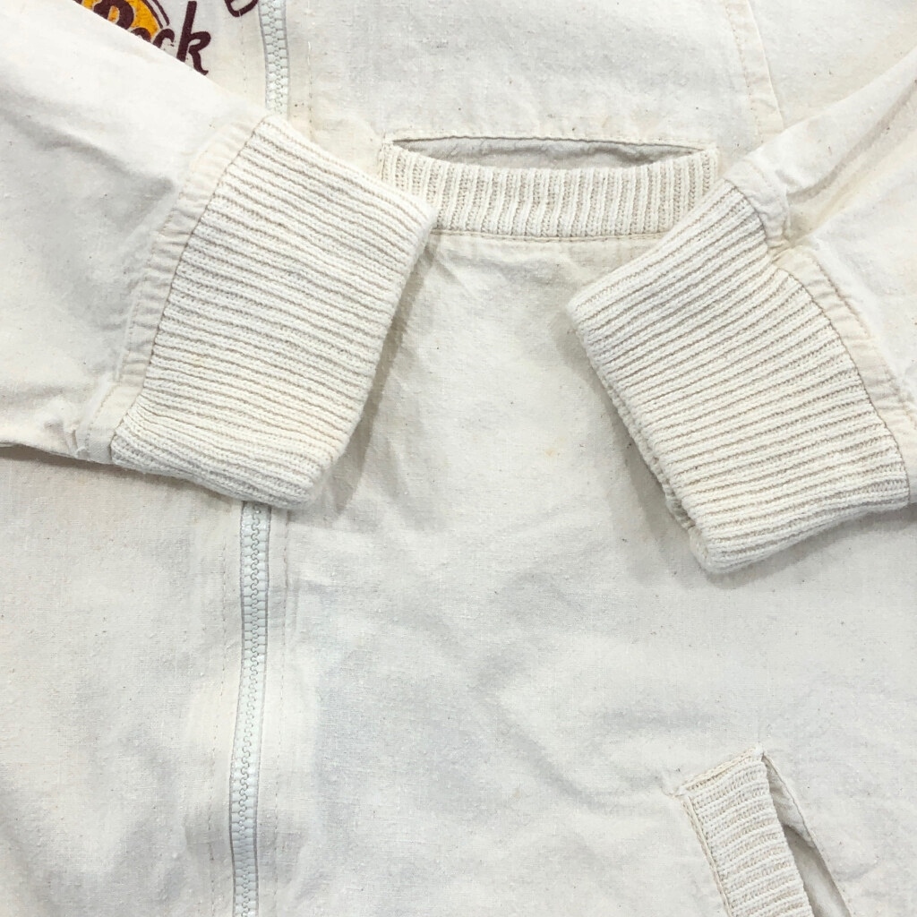| 【商品管理番号】 U7376 【ブランド】 Hard Rock Cafe/ハードロックカフェ 【サイズ】 M 【実寸サイズ】 肩幅:約40cm 着丈:約60cm 身幅:約58cm 袖丈:約60cm 【主な素材】 表地 : コットン 【色】 アイボリー 【仕様】 【状態】 汚れ:袖、袖先、胸 破れ:首元 | |||