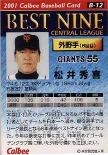 ★中古★トレカ★01カルビープロ野球チップスカード 第1弾★ベストナイン【#B12 松井秀喜 巨人】★