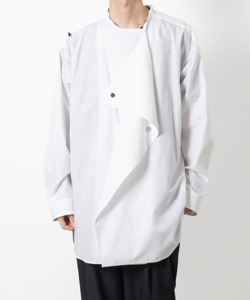 キーワード:シャツ メンズ コットン ノーカラー ロング丈 長袖 無地