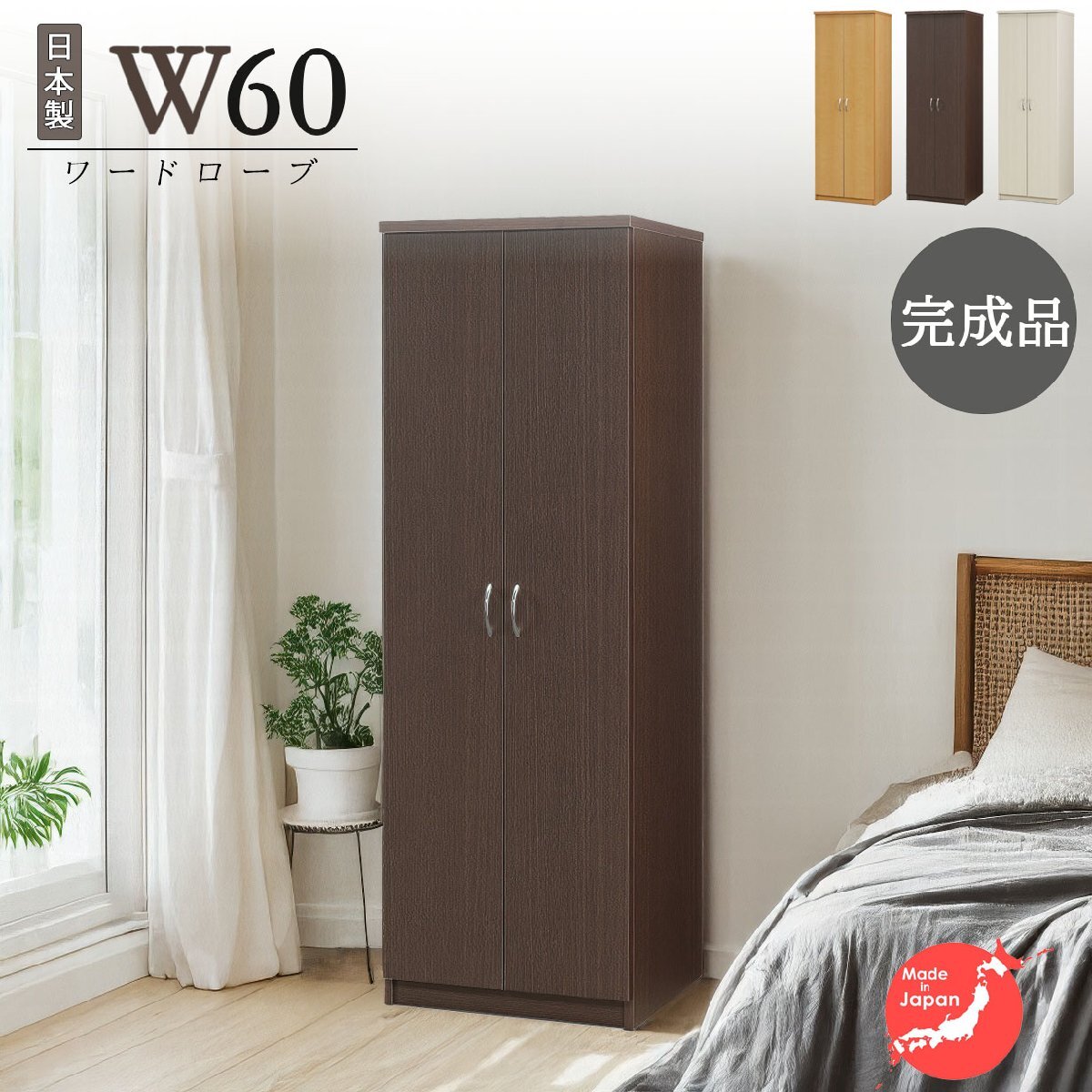 ワードローブ クローゼット タンス 完成品 服吊り 幅60cm 奥行55cm 高さ178cm シンプル ナチュラル