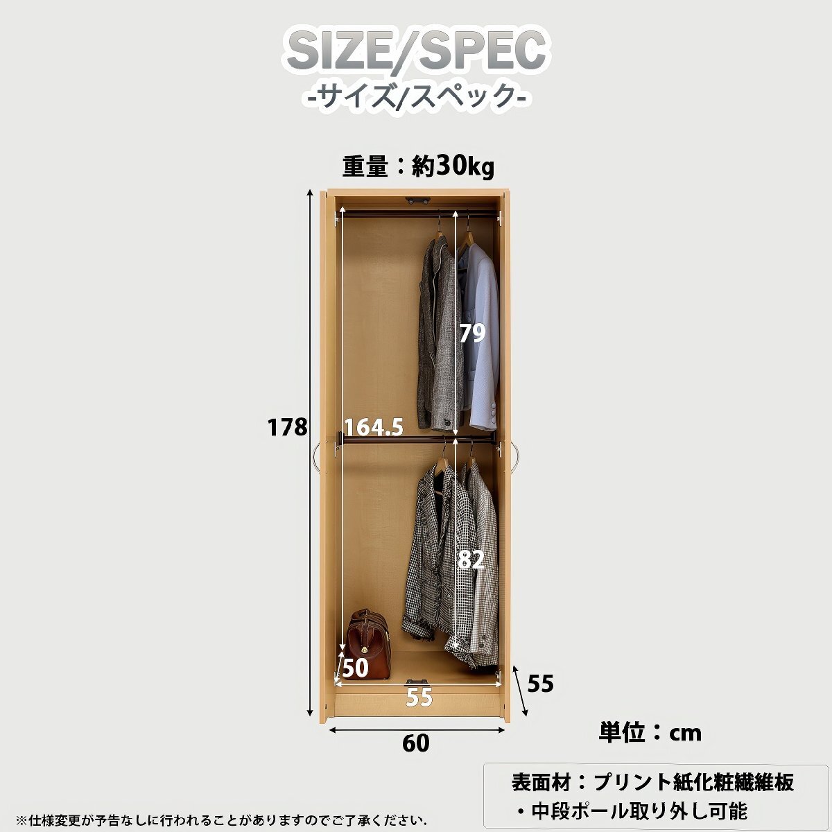 商品サイズ本体:幅60 × 奥行55 × 高さ178 cm