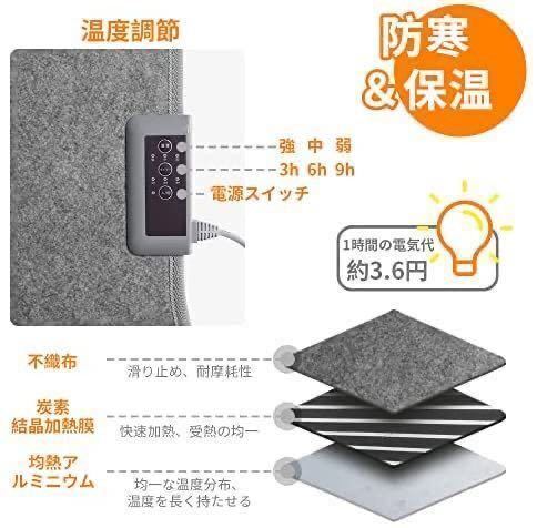 【安全装置&幅広い用途】表面が絨毯状のパネルで、触れてもやけどとの心配がありません。パネルヒーターには安全装置がしっかりと配置するため、温度が上がり過ぎた時や転倒する時には、自動的に電源がオフになり、安全に使用できます。長時間の無操作時にも電源が自動的にオフし、切り忘れても大丈夫です。足元ヒーターは色々な場所で大活躍です。例えば、部屋、オフィス、トイレ、脱衣場にも使用できます。猫や犬なども使用できます。3時間タイマー機能があります。ペット用も心配ありません。