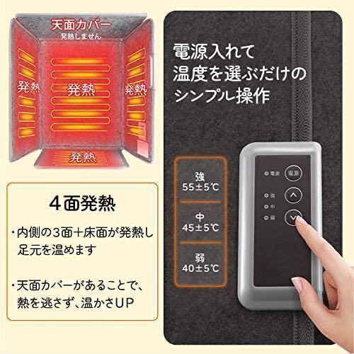 上面もカバーが付いて、熱が逃がさずに、膝下全体をこたつのように暖める。
