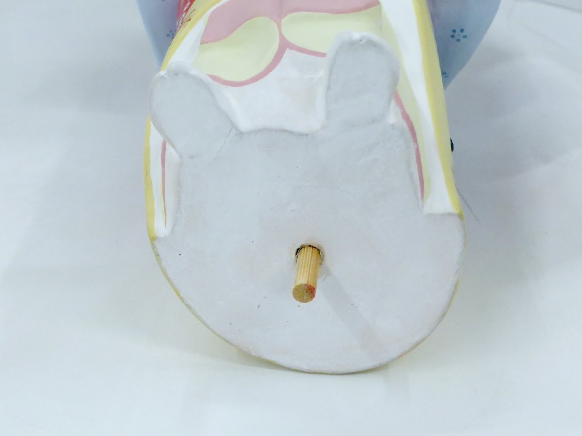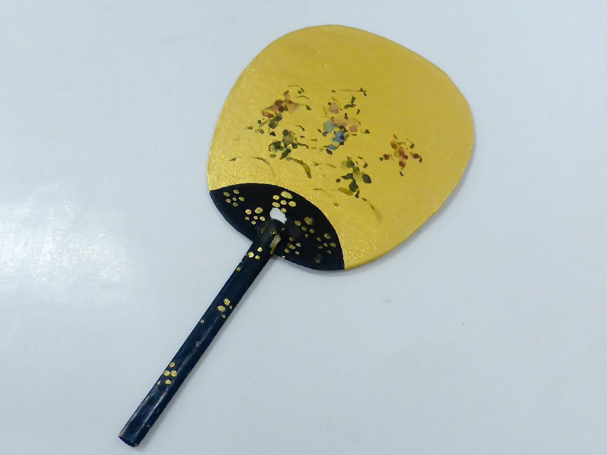 手に持っているうちわは取り外し可能です。うちわの黒い塗装部分が経年のためか一部剥がれています。輸送中に更に剥離が進むかもしれません。