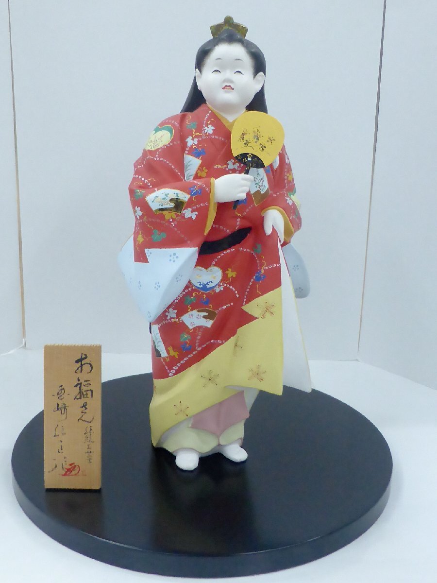 【長期保管品】博多人形 お福さん 国崎信正作 箱・台座・木札付き