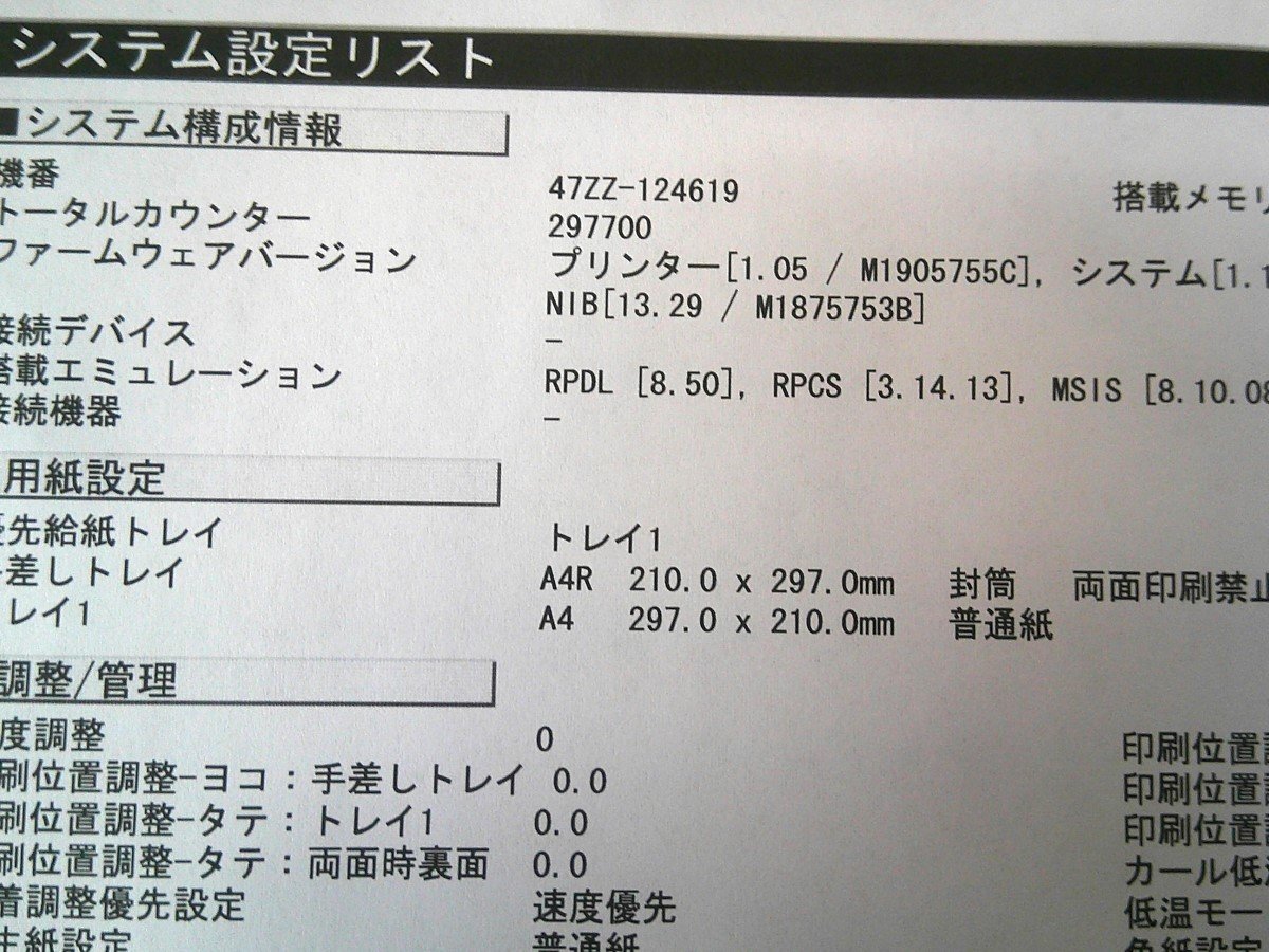 カセットトレイ、手差し印刷動作確認済み。 連続印刷動作確認済み。 自動両面印刷動作確認済み。 USB、LAN動作確認済み。 |