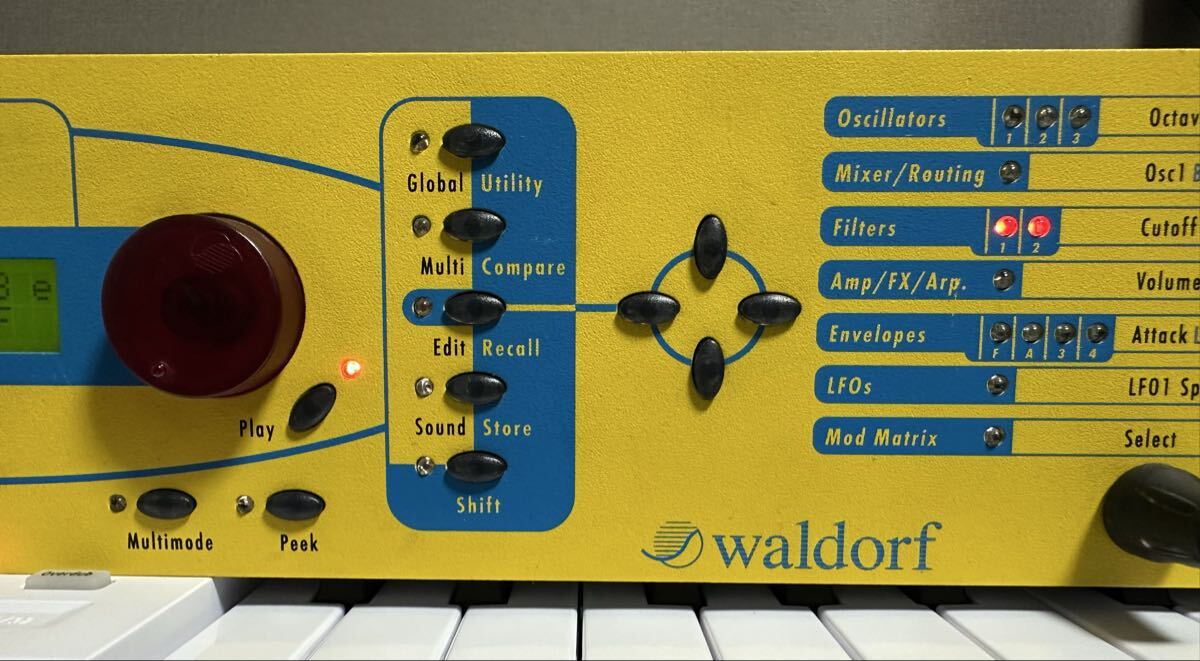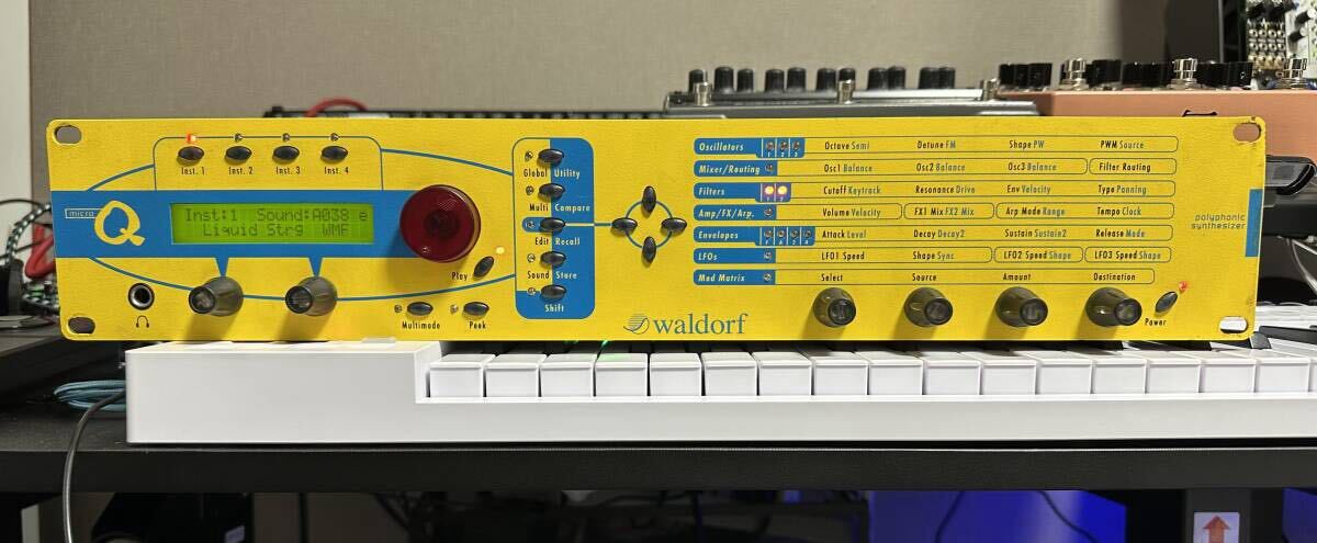 Waldorf のmicroQです。フラッグシップのQと同様、VAとWavetable方式のシンセサイザーです。