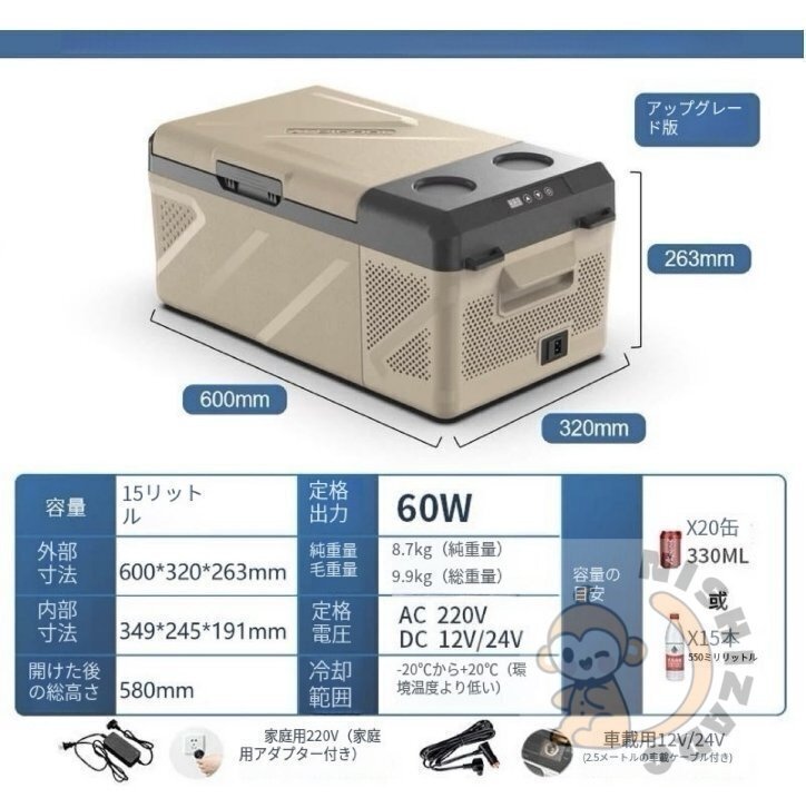 2025最新バージョン 車載冷蔵庫 20L ポータブル冷蔵庫 -20℃~+20℃調整 圧縮機冷凍車用冷凍クーラーボックス 家庭用車載用12V/24V