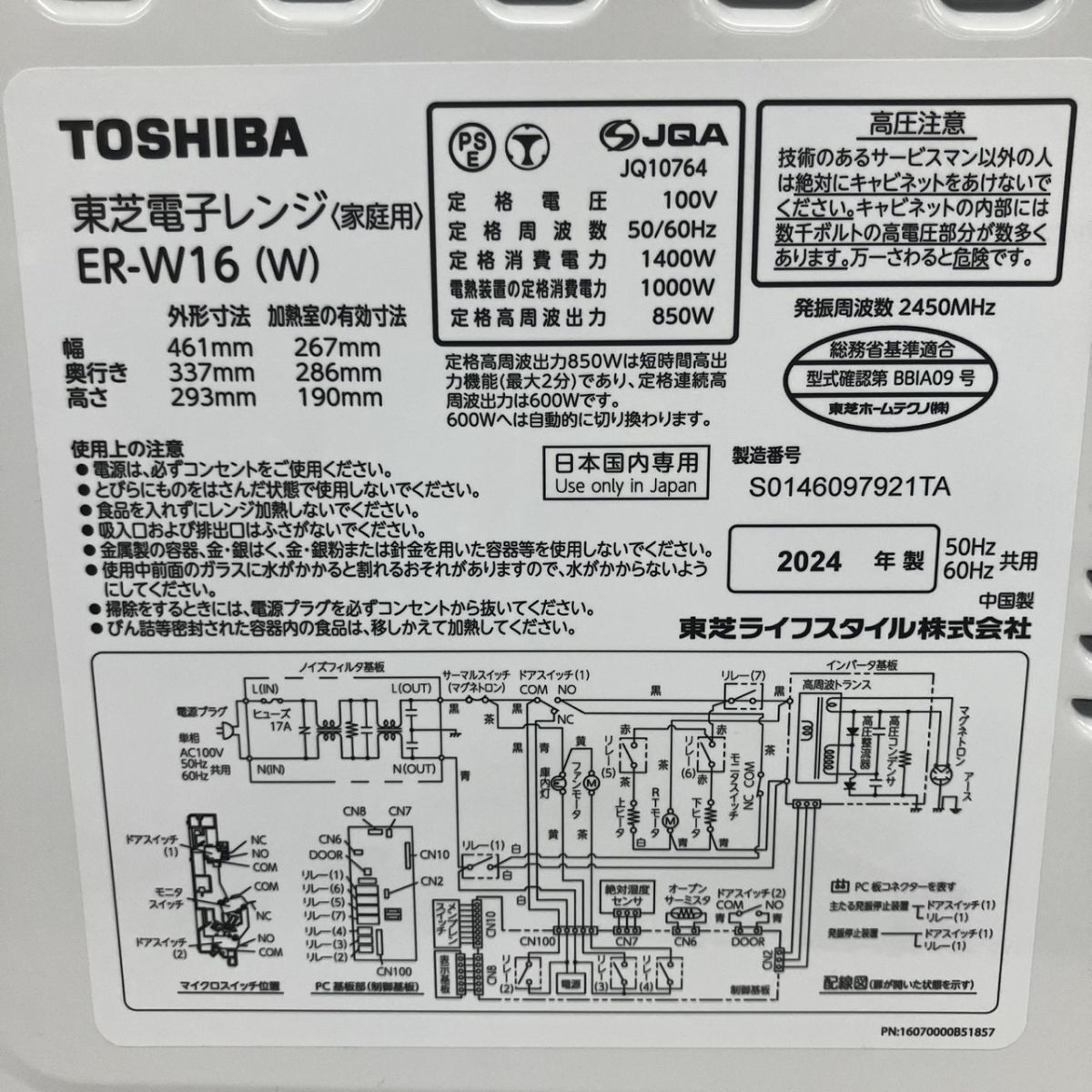 Z009-HR4-54 東芝 TOSHIBA ER-W16 フラット オーブンレンジ 通電確認済 説明書 天板付き 2024年製 ホワイト レンジ HA