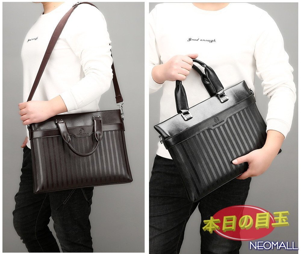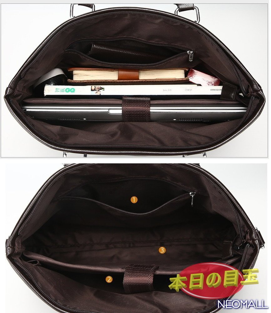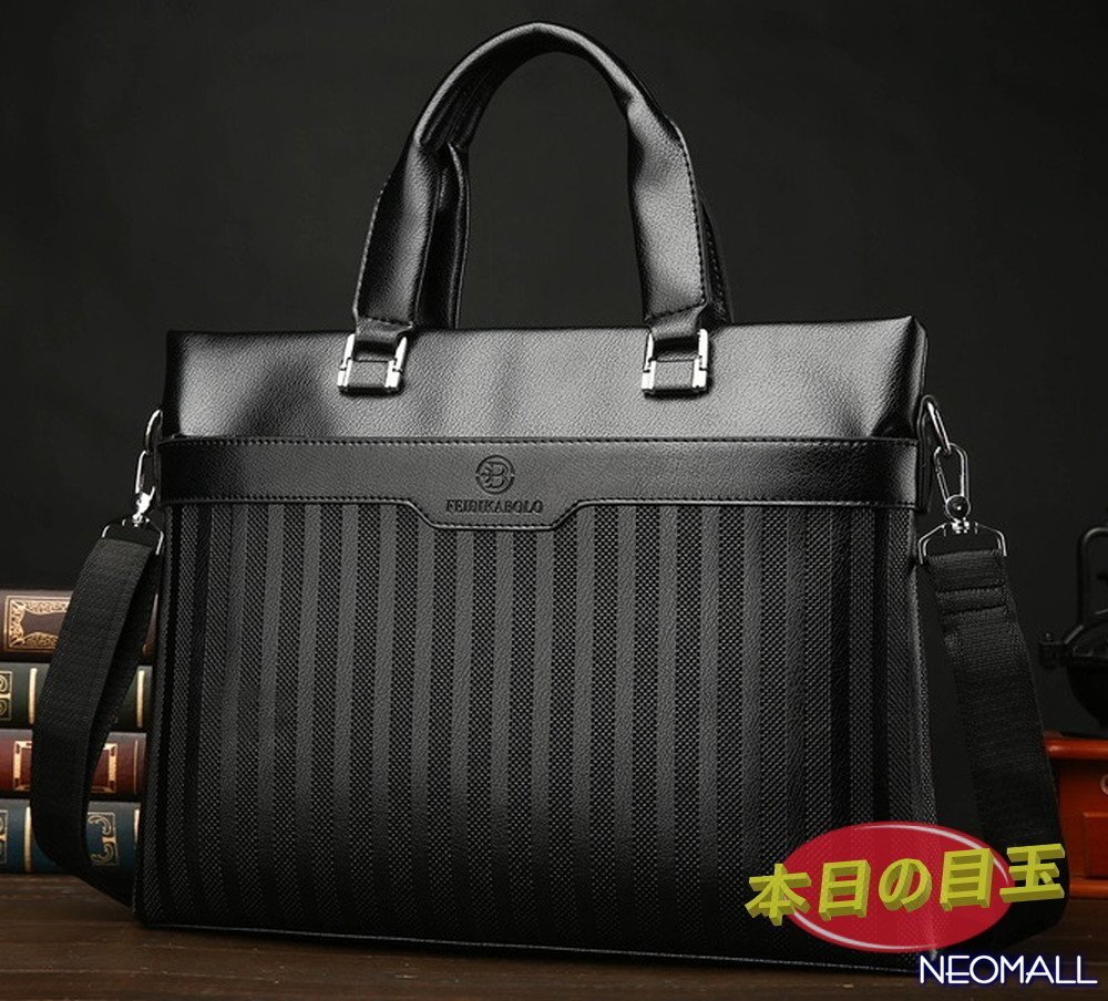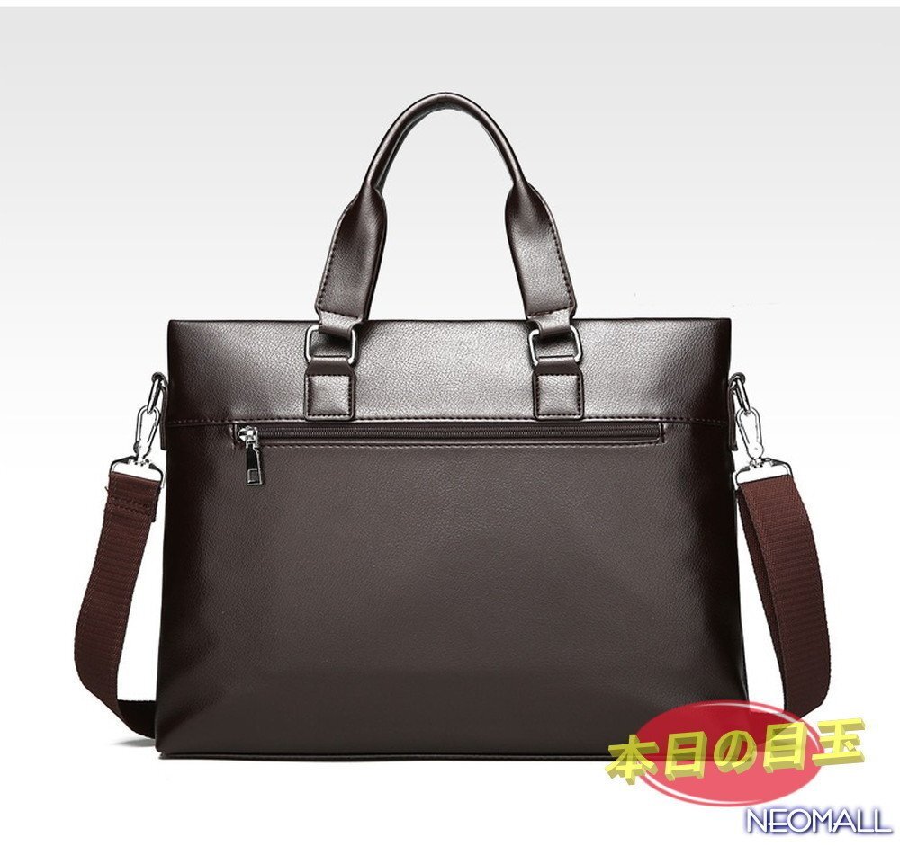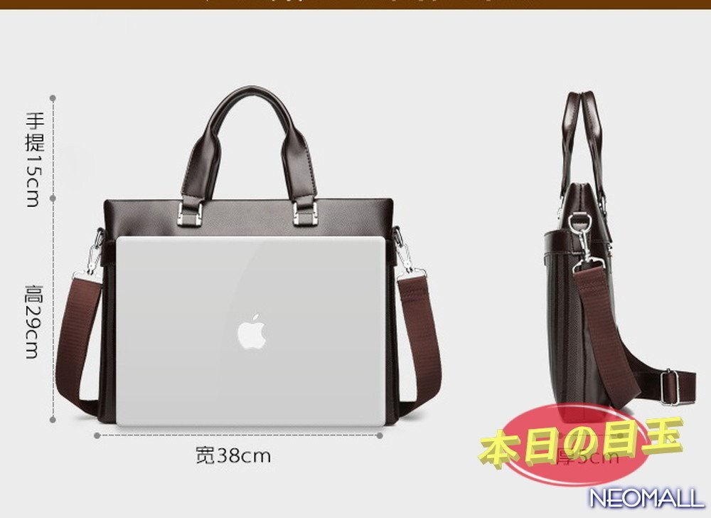 1円〜 新品 メンズ 高級PUレザー ビジネスバッグ【609】ブラック ブリーフケース ショルダー スクエア 横型 大人気 質感◎