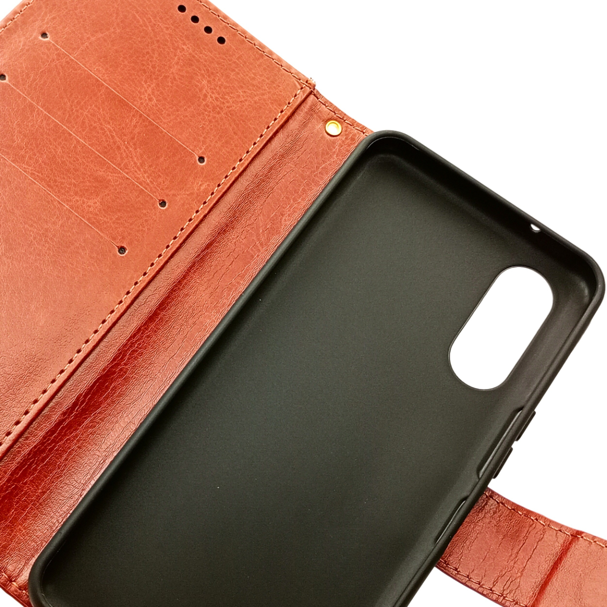 手帳側のスマホケースです。高グレードの合皮を使用しており、