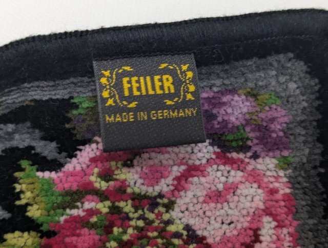 ■フェイラー タオルハンカチ シュニール織 F黒地 縁黒 EILER■