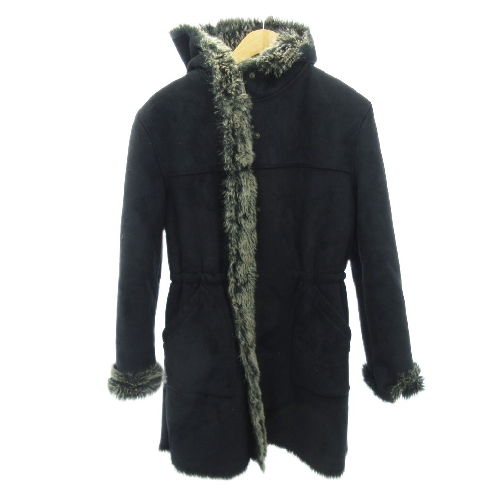 アントネーリ Antonelle フーデッドコート フェイクスエード フェイクファー ロング丈 38 黒 ブラック 1108 レディース