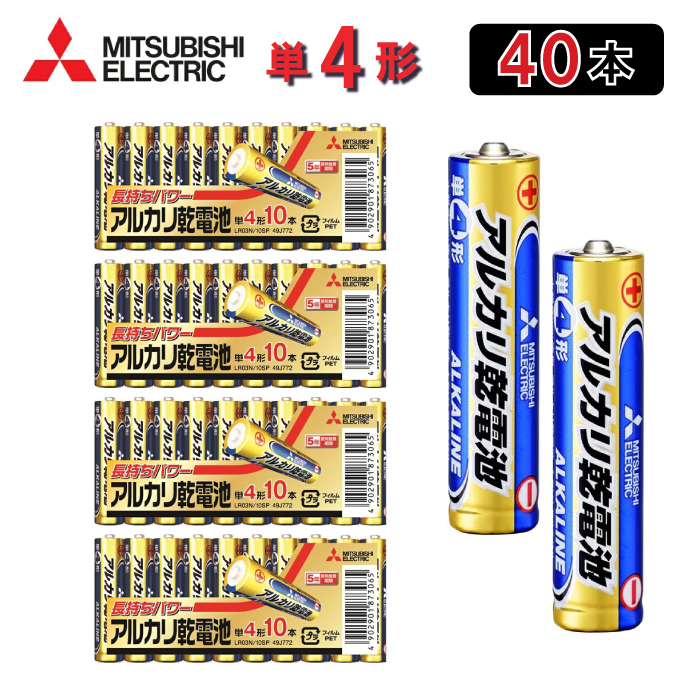 三菱電機【単4電池:40本分】(10本×4個セット) アルカリ乾電池 LR03N/10S 家電