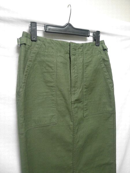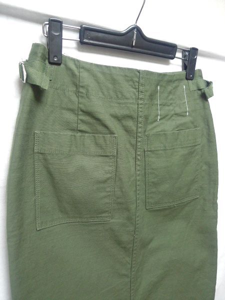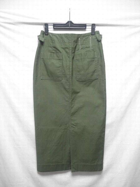 色 カーキ サイズ 38 寸法 ウエスト69cm位 着丈82cm位 (若干の誤差が生じてしまう場合がありますのでご了承下さい) 状態 2回程着用していますがよごれなどはなく良好です。 素材 綿98% ポリウレタン2% 定価 23000円+TAX 生地はストレッチが効いています。 以下HPより 腰からヒップにかけてのシルエットが本当に美しくて、スタイルを良く見せてくれます。 深めのスリットも着心地の良さの一つになっています。 また、サイドにアジェスターが付いており、ウエストの調節が可能と色々な人が着用し易いように細部まで拘りが散りばめられています。 |