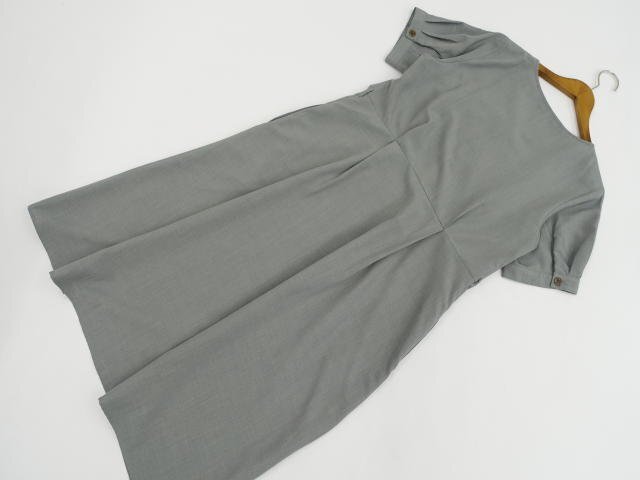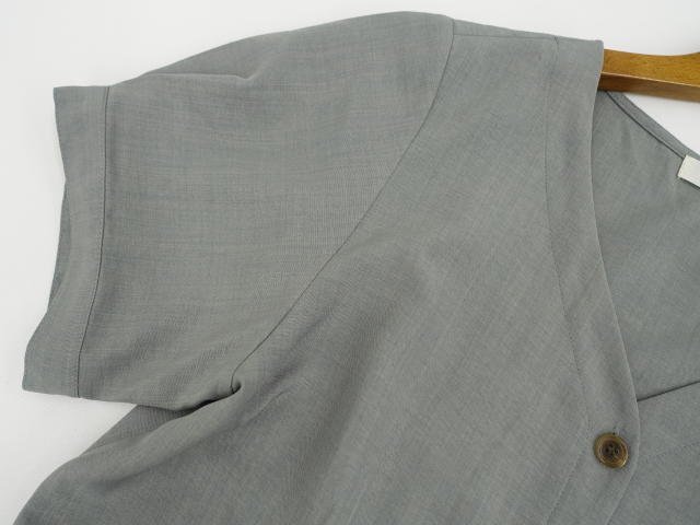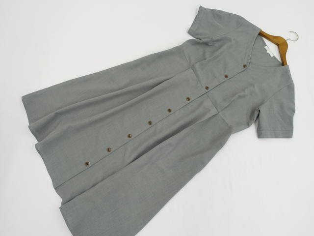 ロング丈 半袖 Vネック 洗えるワンピース L ダスティグリーン