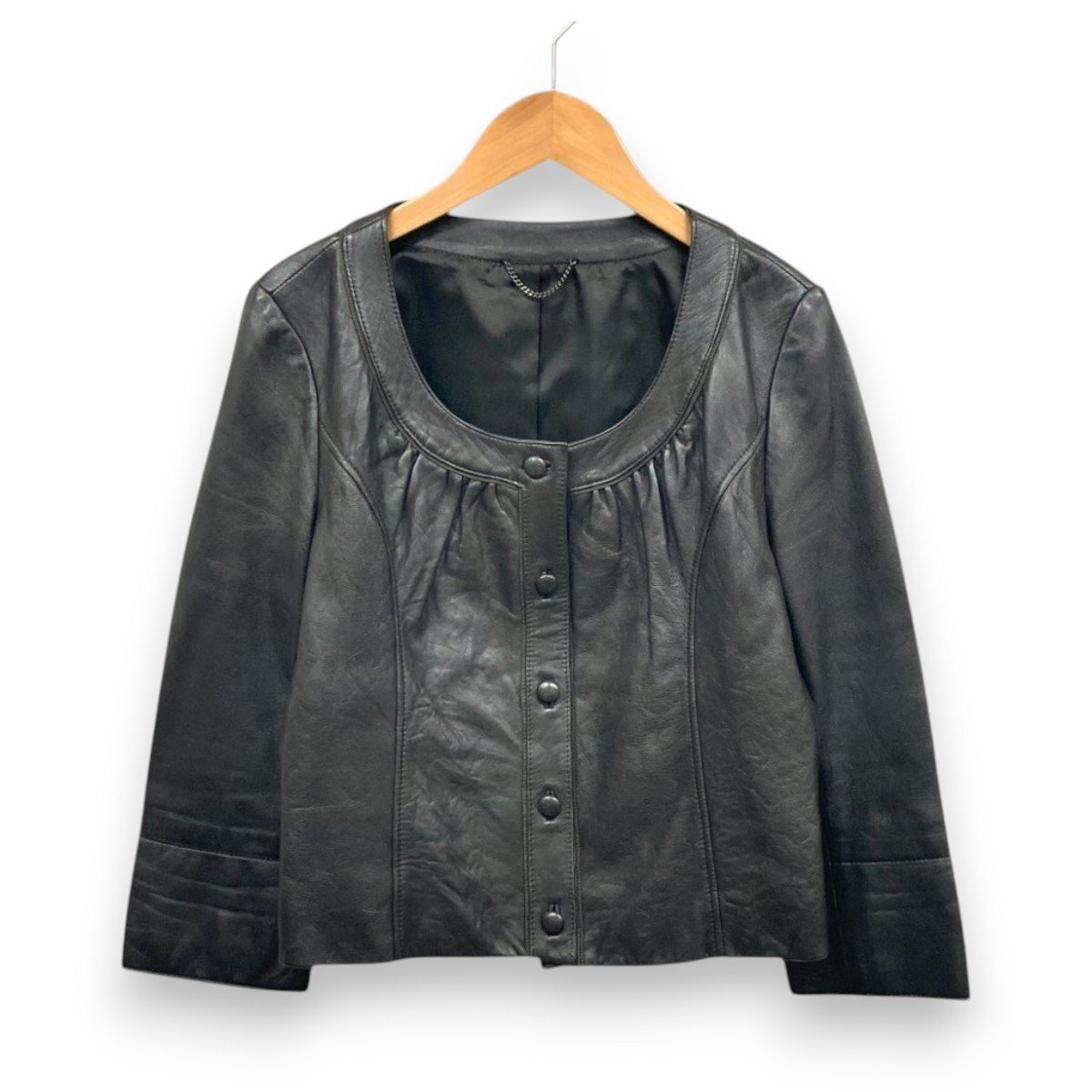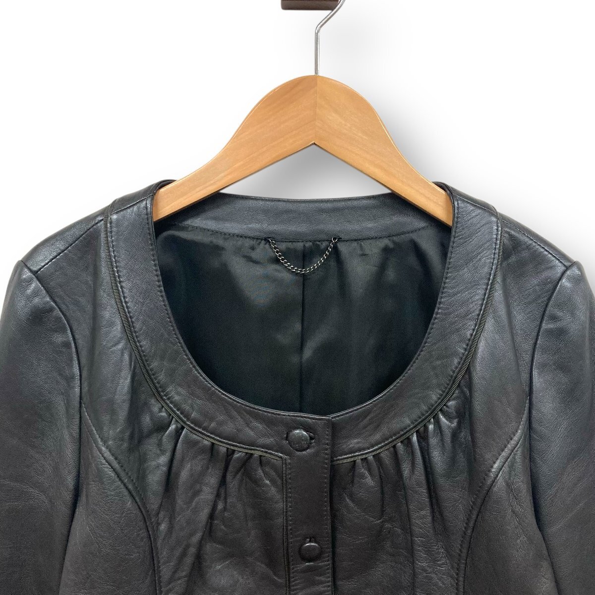 美品 LAUTREAMONT/ロートレアモン ラムレザーノーカラージャケット 2/濃茶 oe009