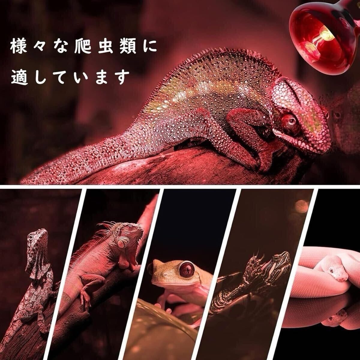 爬虫類ヒートランプは、ほとんどの爬虫類、両生類、カメ、カメ、ヤモリ、ヘビ、トカゲ、カメレ-オンなどに適しています