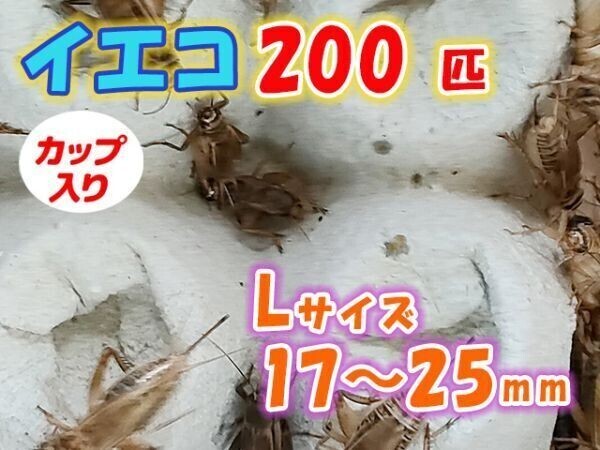 ヨーロッパイエコオロギ イエコ Lサイズ 15mm~20mm カップ入り 200匹 生餌 死着保証10% 爬虫類 両生類 トカゲ カエル [3677:gopwx]