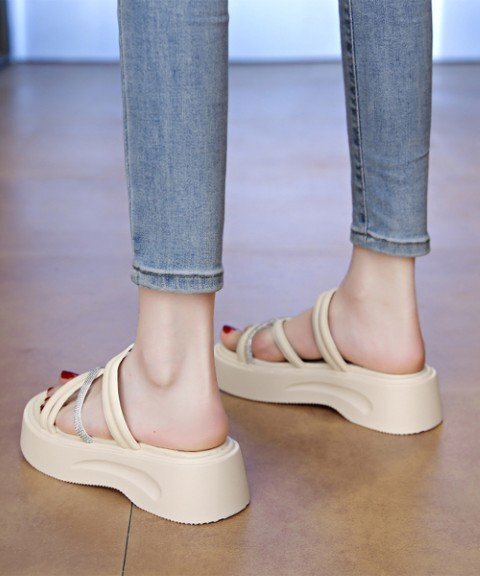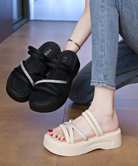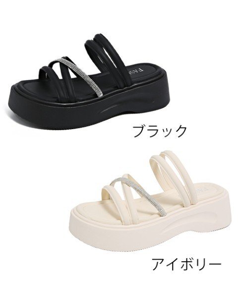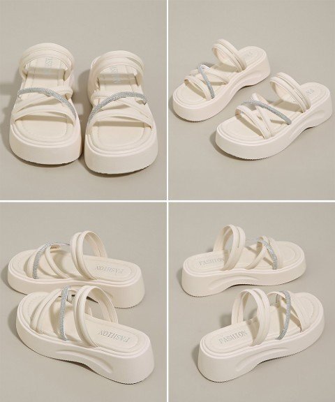 シンプルでモダンなデザインのラインストーン付き厚底サンダル。