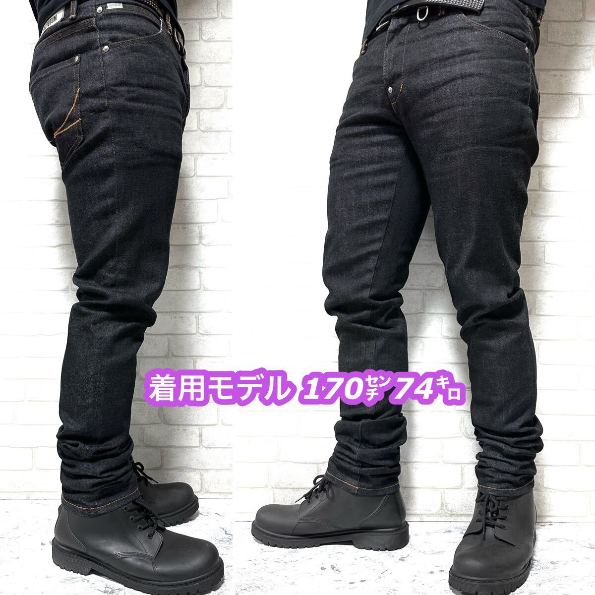 ☆ 仕上げによる綺麗な光沢感が特徴のジーンズ。また、ストレッチデニム素材を使用した伸縮性のある快適な穿き心地。更にバックには牛革レザーのパッチを配置。カジュアルからきれいめまで幅広いスタイルに使える万能のジーンズです。