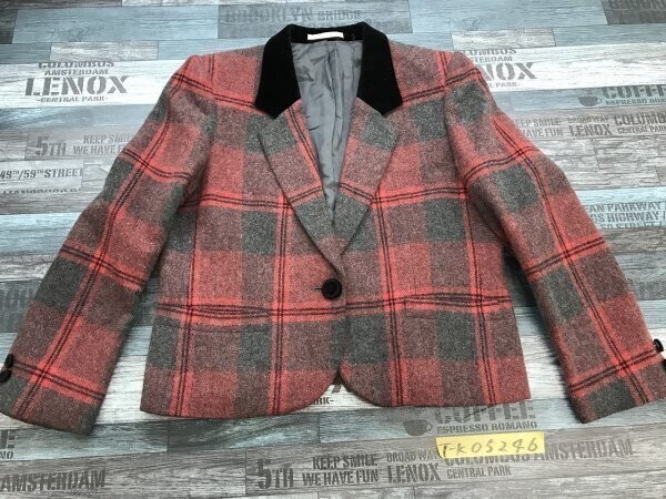 SELBONE レディース 肩パッド チェック レトロ 起毛 ワンボタン ジャケット 秋冬 13A2 赤グレー黒 です。