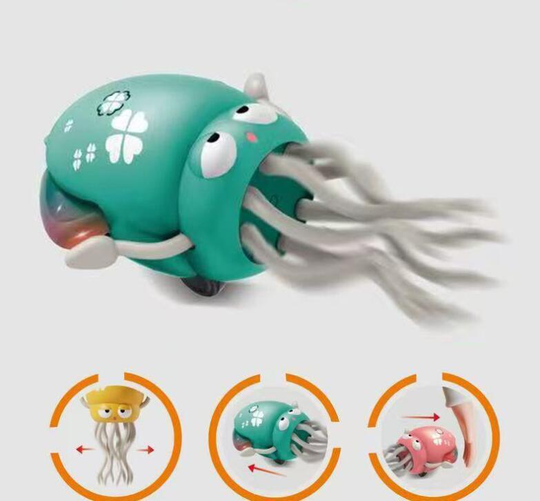 カラフルなLEDライトとリズミカルな音楽に合わせて、イカが360°回転しながらユニークなダンスを披露。赤ちゃんのハイハイ練習や幼児のリズム感育成に最適です。