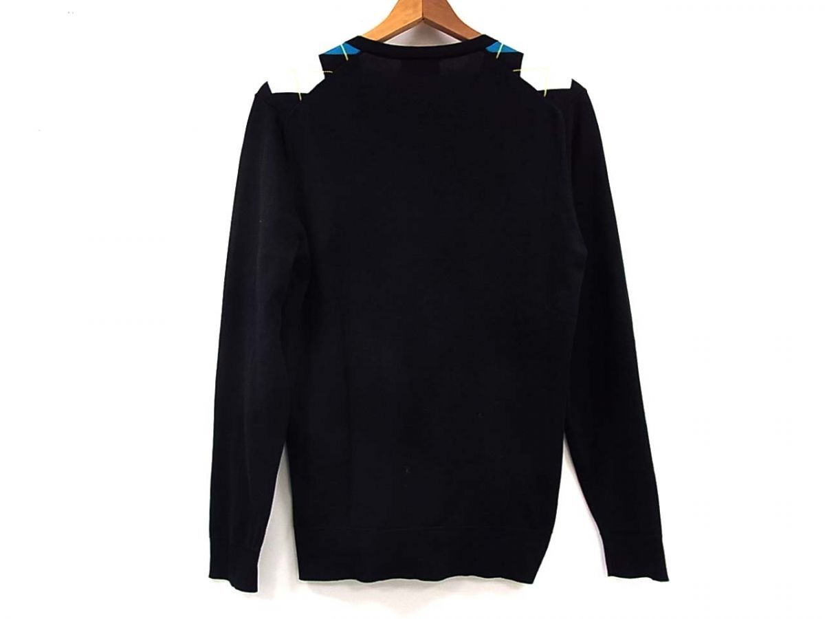 備考 鮮やかなブルーとホワイトのアーガイル柄が印象的な、Vネックニット。