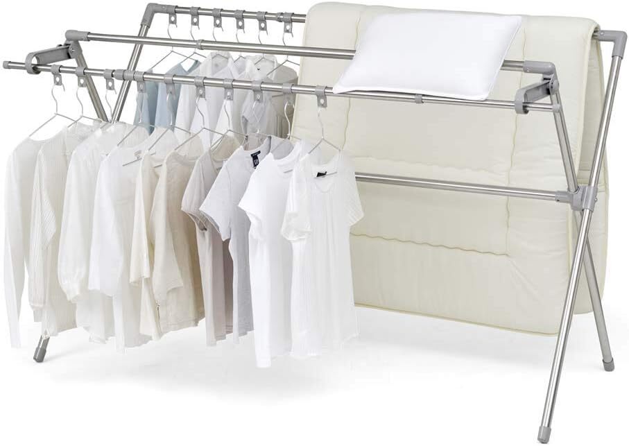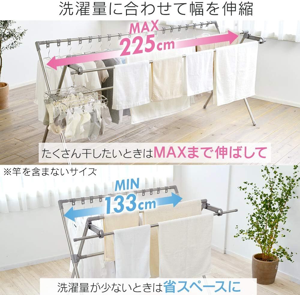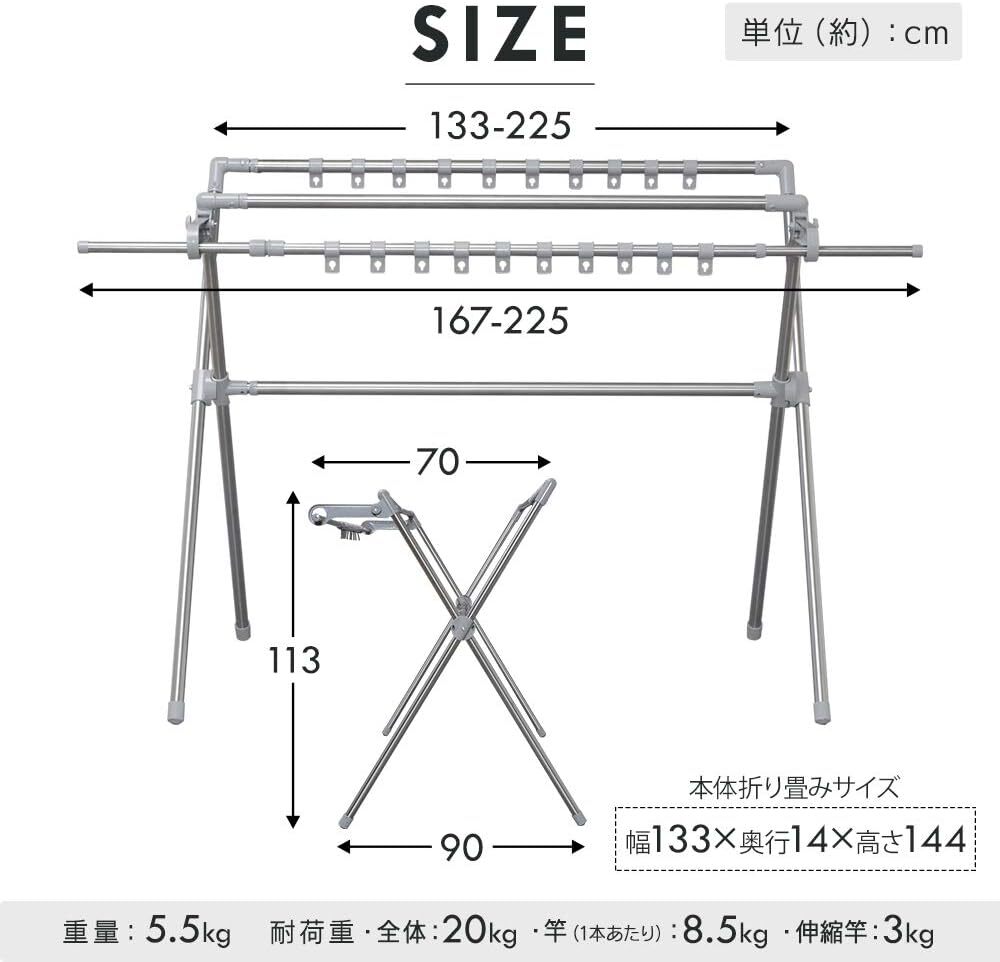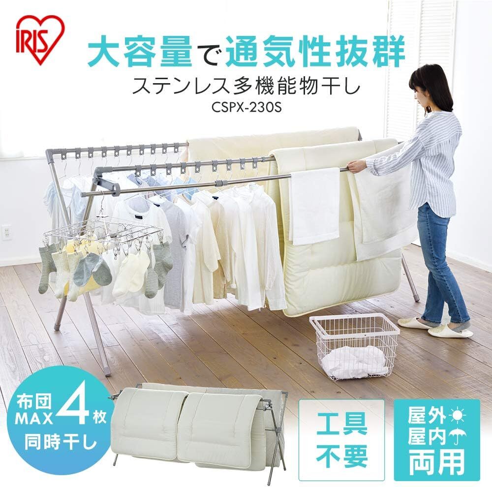 便利商品 ステンレス鋼 物干し 布団も干せる 多機能 伸縮 布団4枚分 布団干し ダブルバー CSPX-230S 無地 ホワイト アイリスオーヤマ