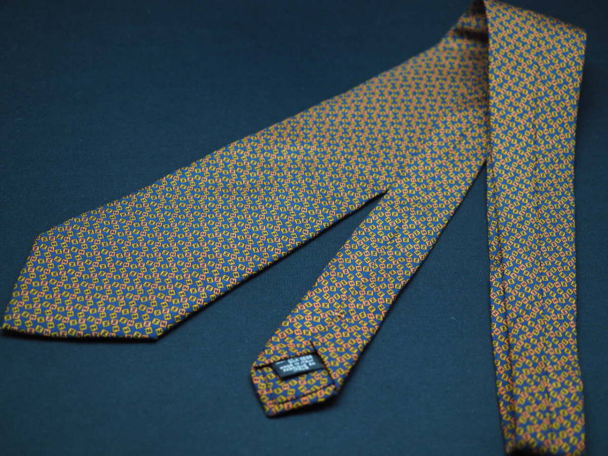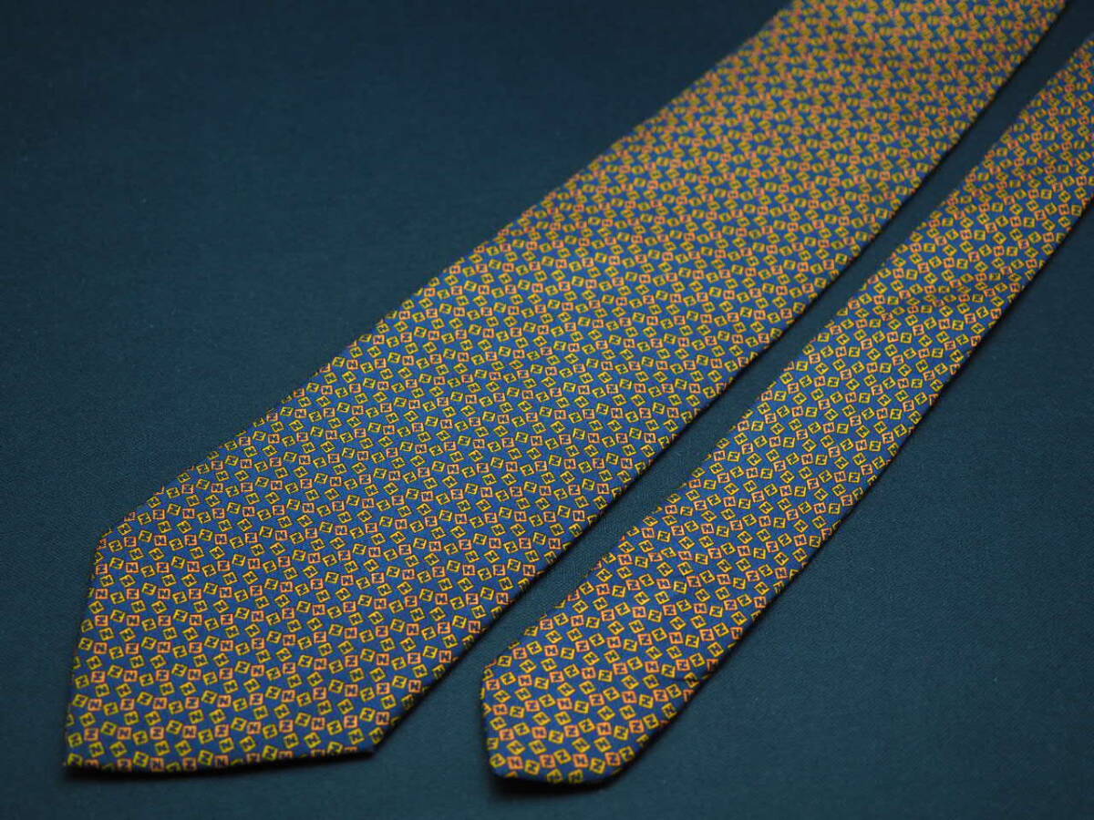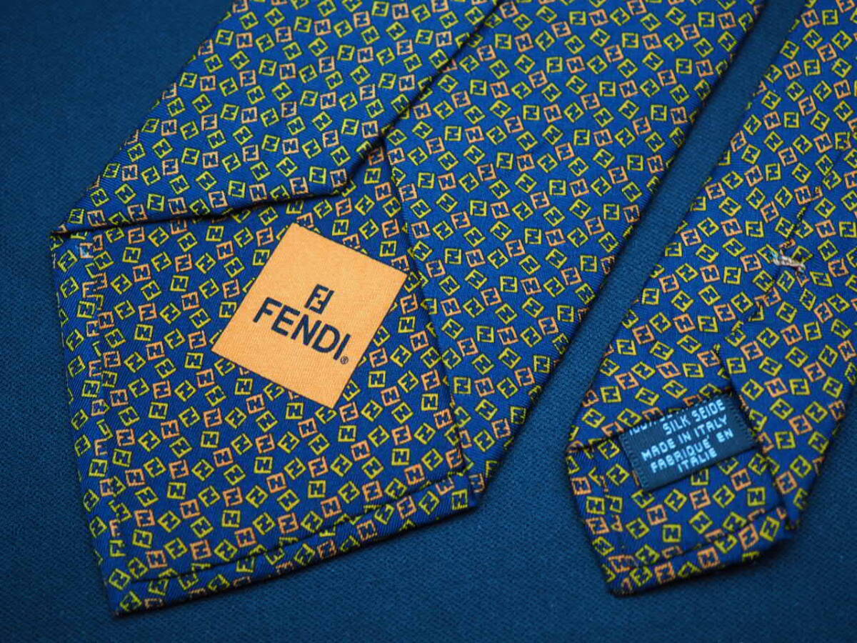美品【FENDI フェンディ】 G1619 ロゴ ネイビーオレンジ系 SILK ブランド ネクタイ 古着 良品 転売 仕入