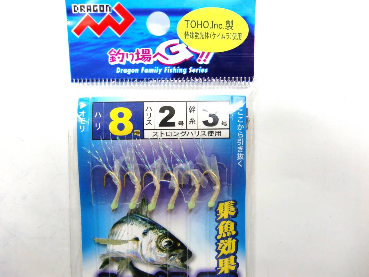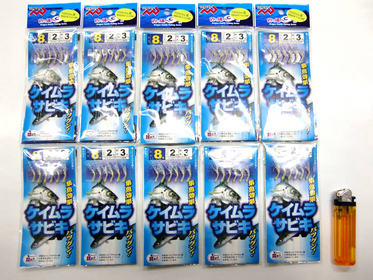 | 商品説明 | 新品のケイムラサビキ 8-2 10枚セット ショートラメ入になります。 セット内容 ハリ8号 ハリス2号 幹糸3号 10枚 ライターは大きさを比較する為に使用した物で付属はしません。 TOHO,Inc.製特殊蛍光体(ケイムラ)使用 紫外線を受け青白く発光する特殊蛍光体で広範囲にアピール! |