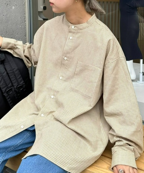 参考商品名:【ユニセックス】ビエラチェック微起毛バンドカラーシャツ