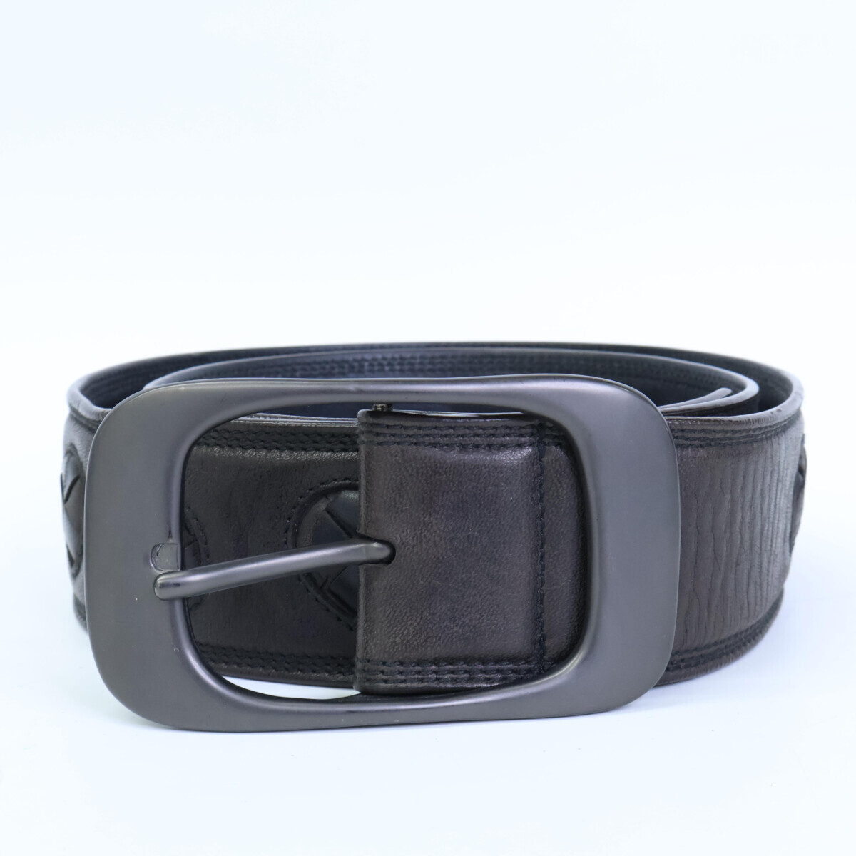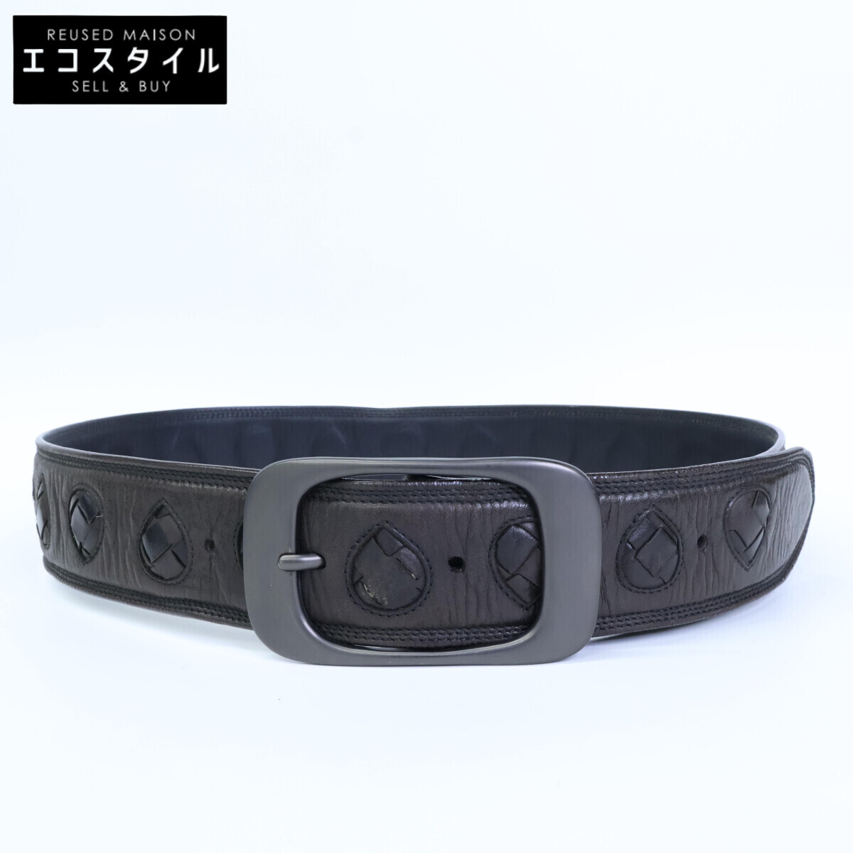 1円 BOTTEGA VENETA ボッテガヴェネタ イントレチャート装飾 レザーベルト ベルト 38 ブラック メンズ