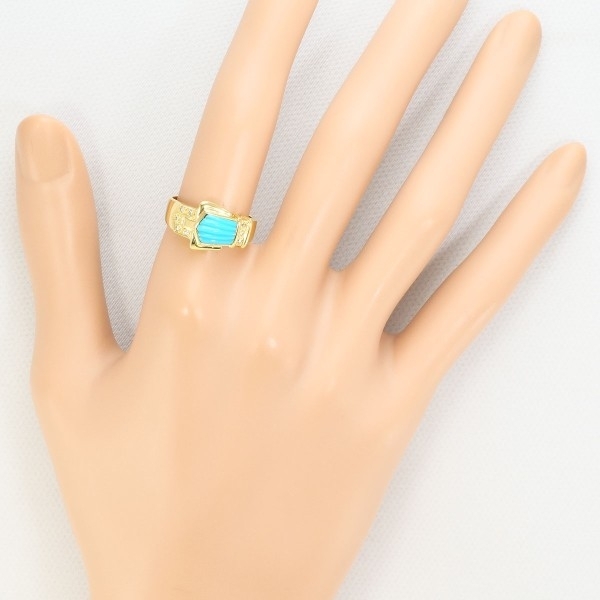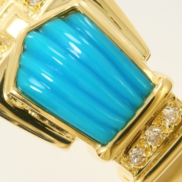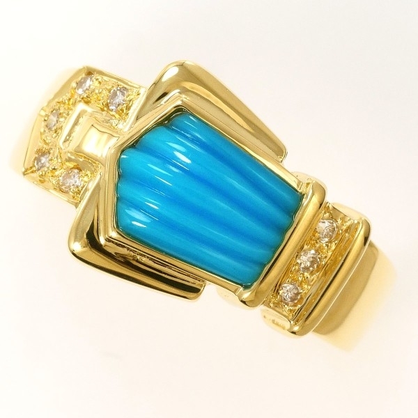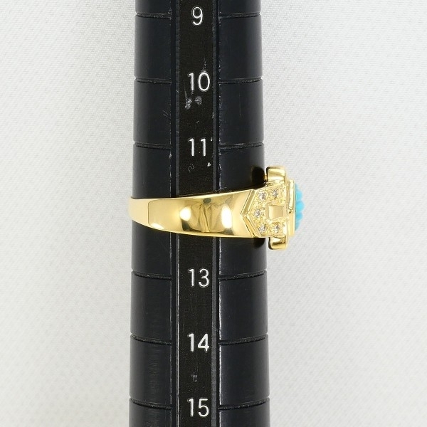 | K18YG リング 指輪 12号 ターコイズ ダイヤ 0.08 カード鑑別書 総重量約4.8g 中古 美品 送料無料 | |