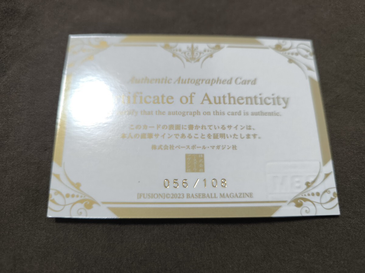 Z048: 2023BBMカード Fusion オリックスバファローズ 平野大和選手 直筆サインカード 108枚限定