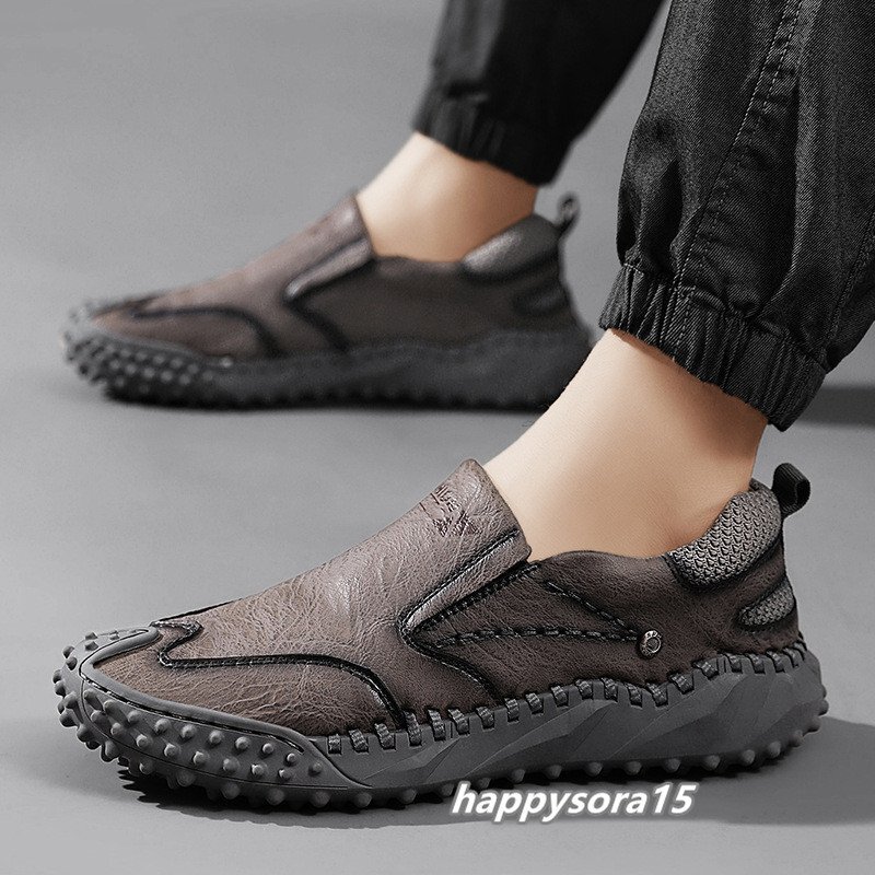 ローファー メンズ スリッポン ビジネスシューズ スニーカー ドライビングシューズ ローカット 紳士靴  PU靴 グレー 24.5cm