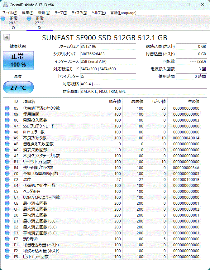 クリスタルインフォで【正常】表示です。