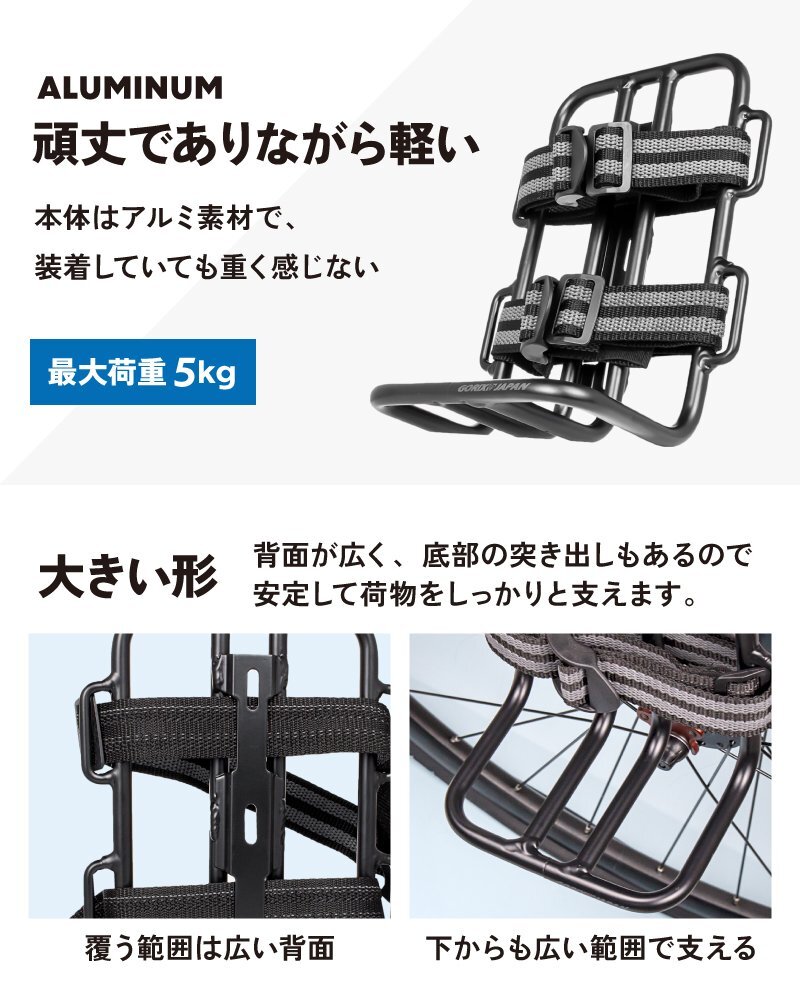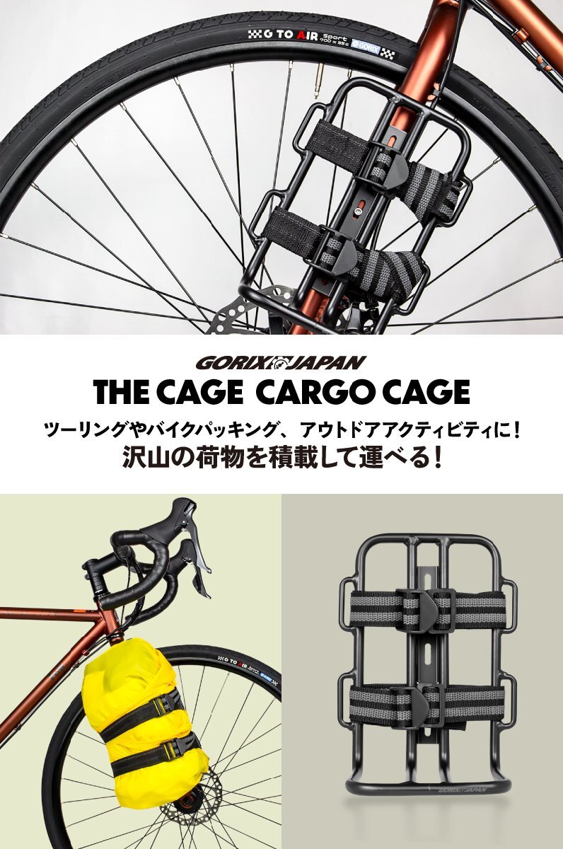 このカーゴケージは、フロントフォークに取り付けることで、様々なアイテムを簡単に積載できます。ダボ穴に固定するタイプなので、取り付けも簡単です。 | |