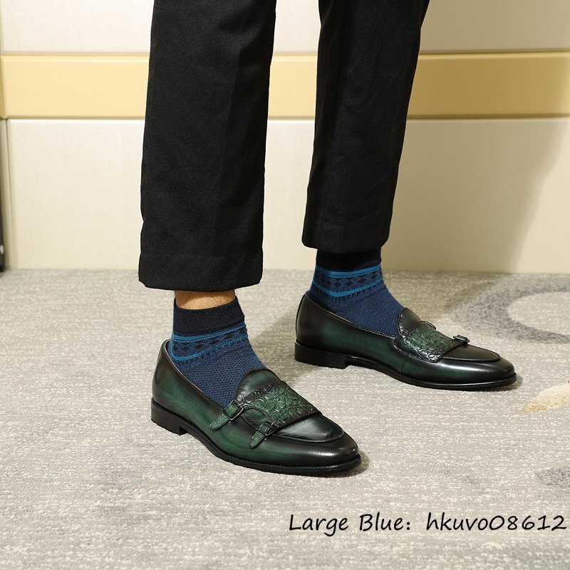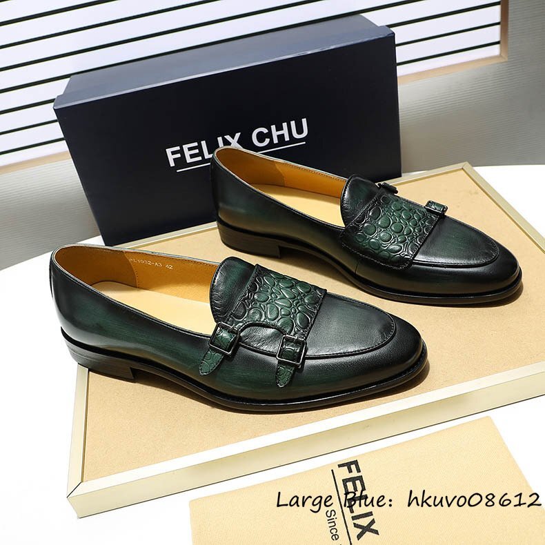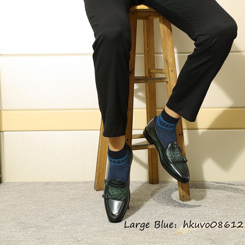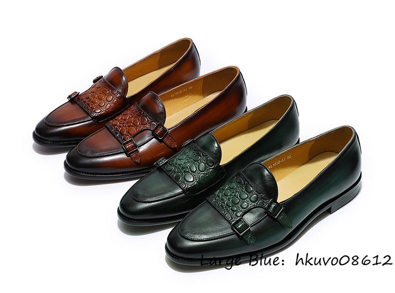 定価9万■ダブルモンクストラップ 鰐柄 革靴 ビジネスシューズ 本革 職人手塗り上げ レザーシューズ ドレスシューズ 牛革 グリーン 24.5cm