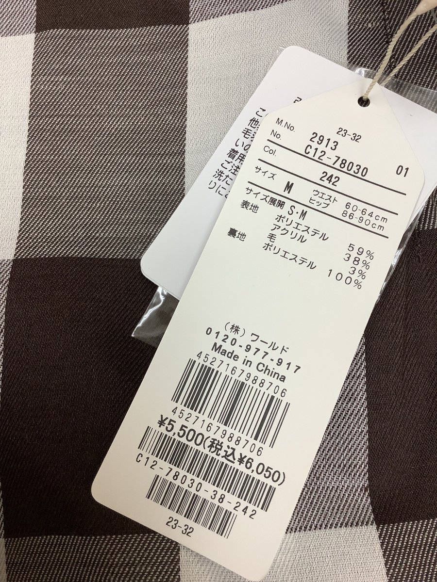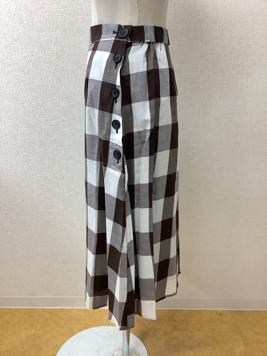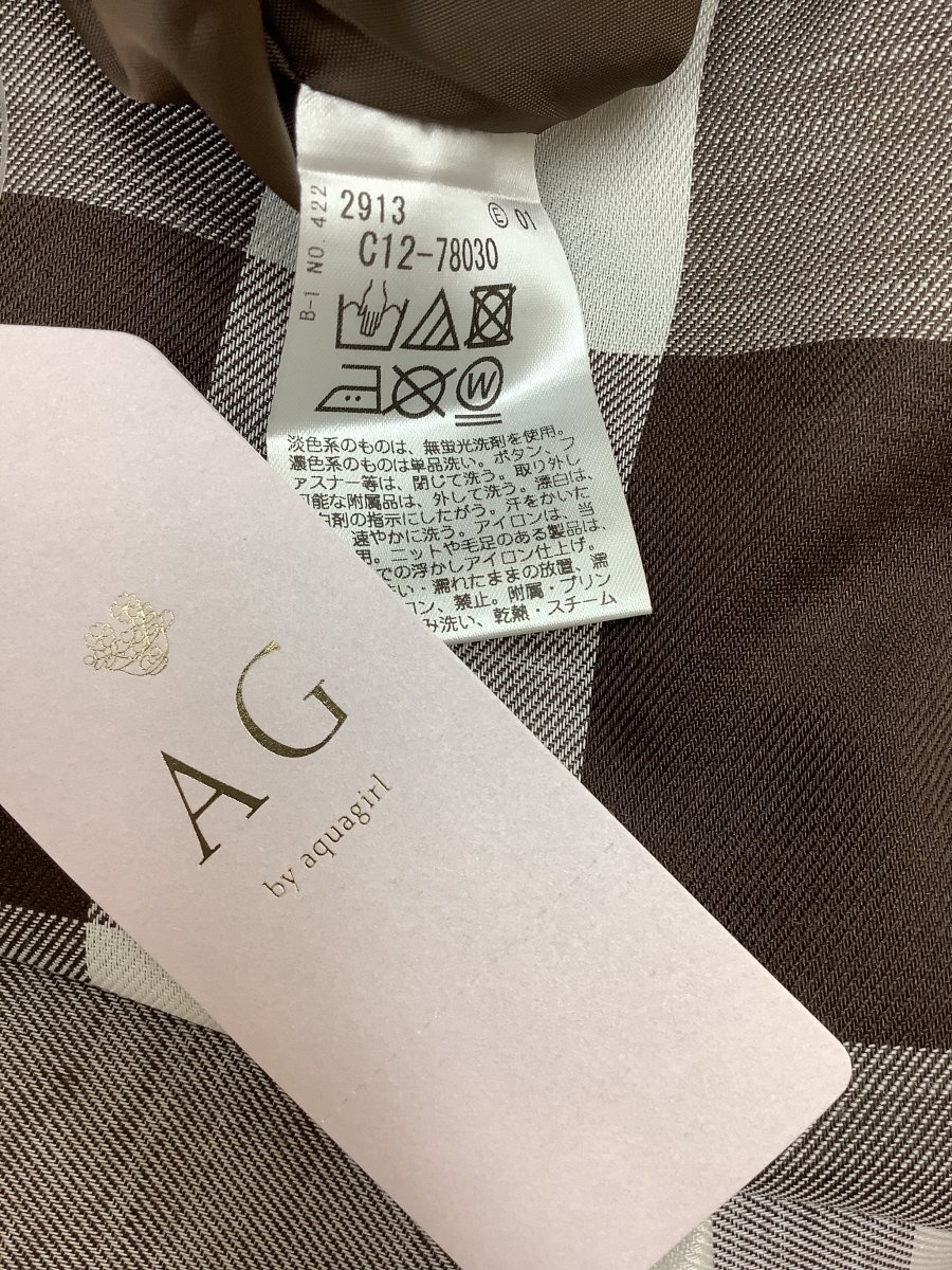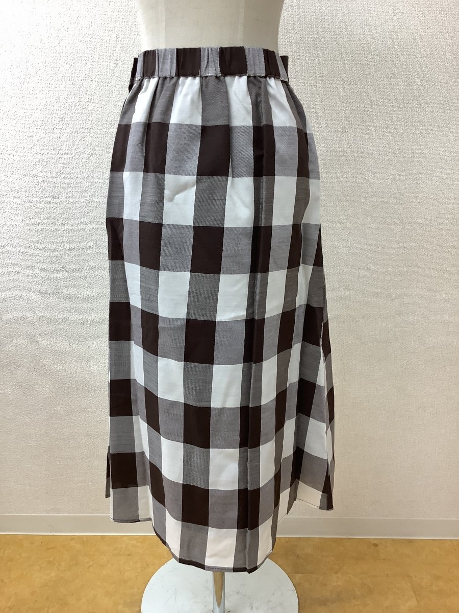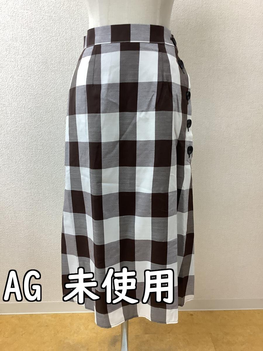 | 管理番号:10^138938 AG by アクアガール (aquagirl) タグ付き未使用 オフホワイトと茶のチェックスカート ウエストゴム 表示サイズ:M 実寸(参考)