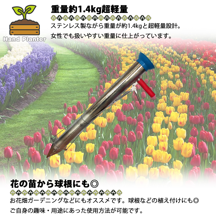 軽量で投入筒は88cmもあり腰を曲げずに、立ち作業で楽々行えます。