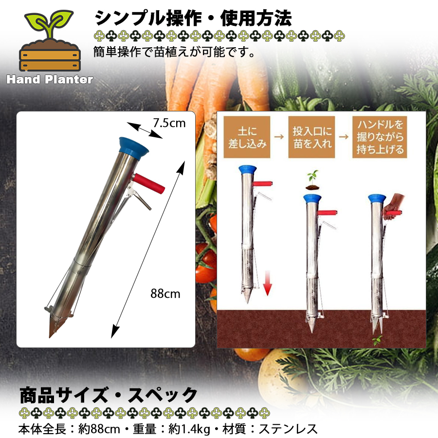 筒の内径は直径7.5cmで、様々な土付き苗に対応