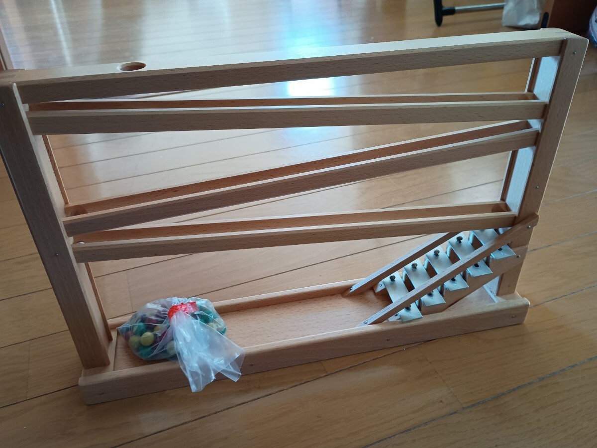 こどもの誕生日お祝いでいただきましたが、写真にあるように小さなボールがついているため、もう少し成長するまで…と、使用せずに自宅で保存していました。(そして使用時期を逃してしまいました。)製品自体はほぼ未使用ですが、箱が色褪せなどがありますので、贈り物にはお勧めできません。ご自宅で使用されるには全く問題ないかと思います。ボールは私が開封したときから写真のような色合いでした。よくご覧になってご検討くださいませ。定価の半額以下となっております。