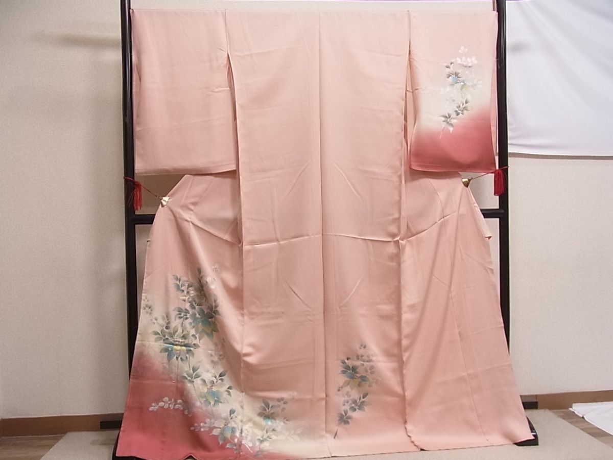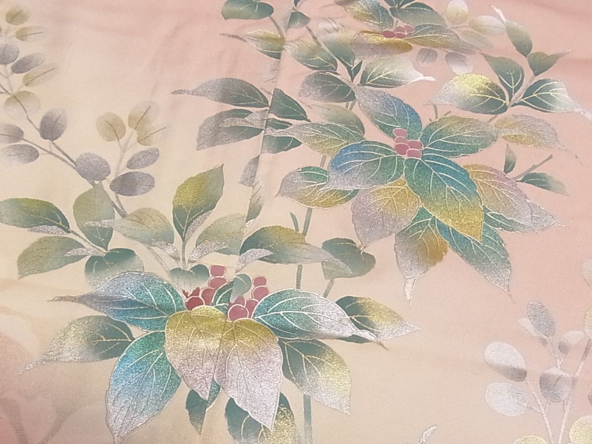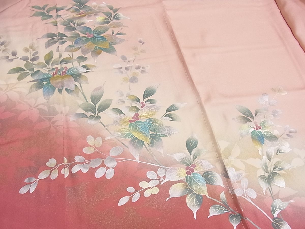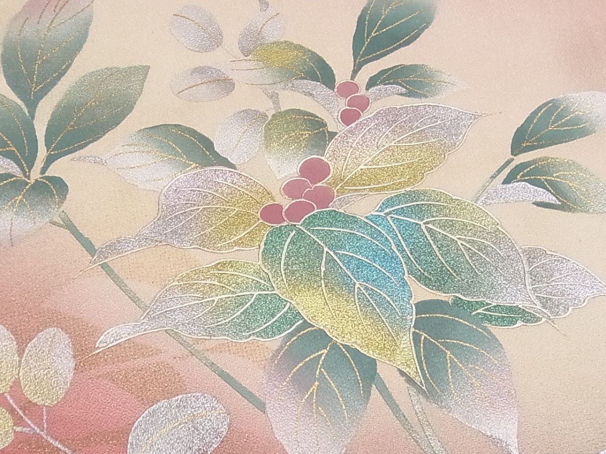 eふれんず◆訪問着 仮絵羽 南天枝葉文 金銀彩 暈し染め 丹後ちりめん 未使用品 正絹◆am2489